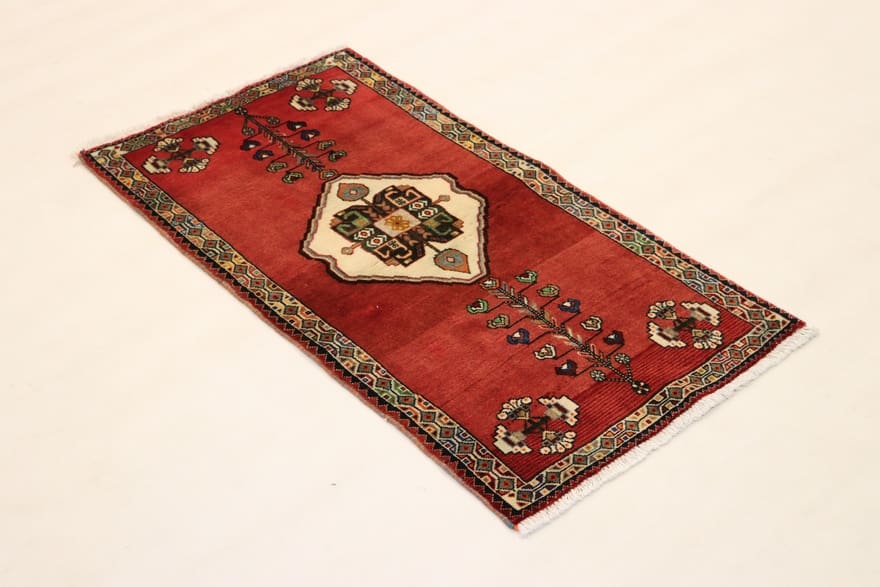 Handgeknüpfter Ghashghai Teppich | Knotendichte: 160.000 – 200.000 Knoten/m² | Material: Hochwertige Wolle | Kette: Baumwolle | Größe: 131×73 cm | Farbe: Rot/Orange | Zustand: Neu | Ursprung: Iran / Persien | Dicke: ca. 8 mm | Gewicht: ca. 4 kg