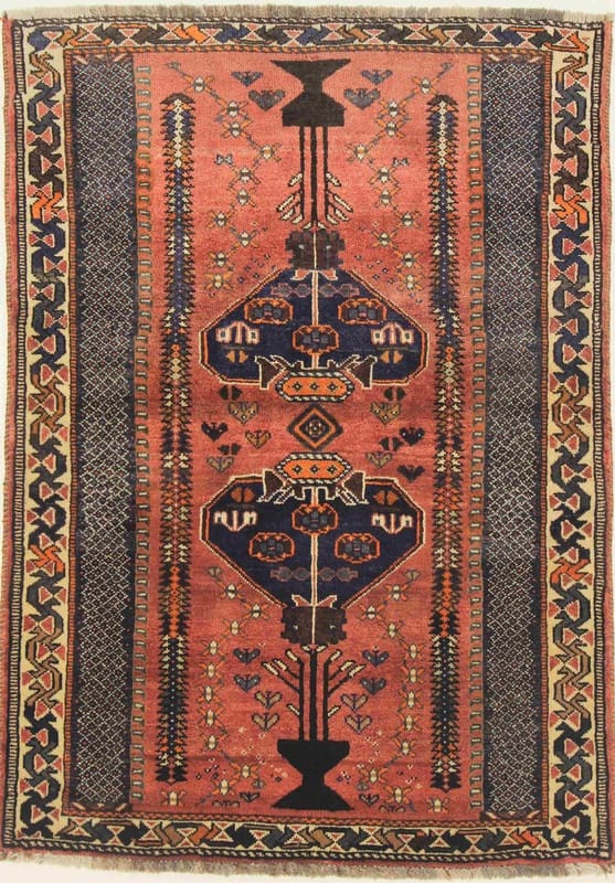Handgeknüpfter Ghashghai Teppich | Knotendichte: 160.000 – 200.000 Knoten/m² | Material: Hochwertige Wolle | Größe: 153×108 cm | Farbe: Lebhaftes Rot/Orange | Zustand: Neu | Ursprung: Iran/Persien