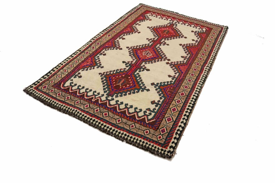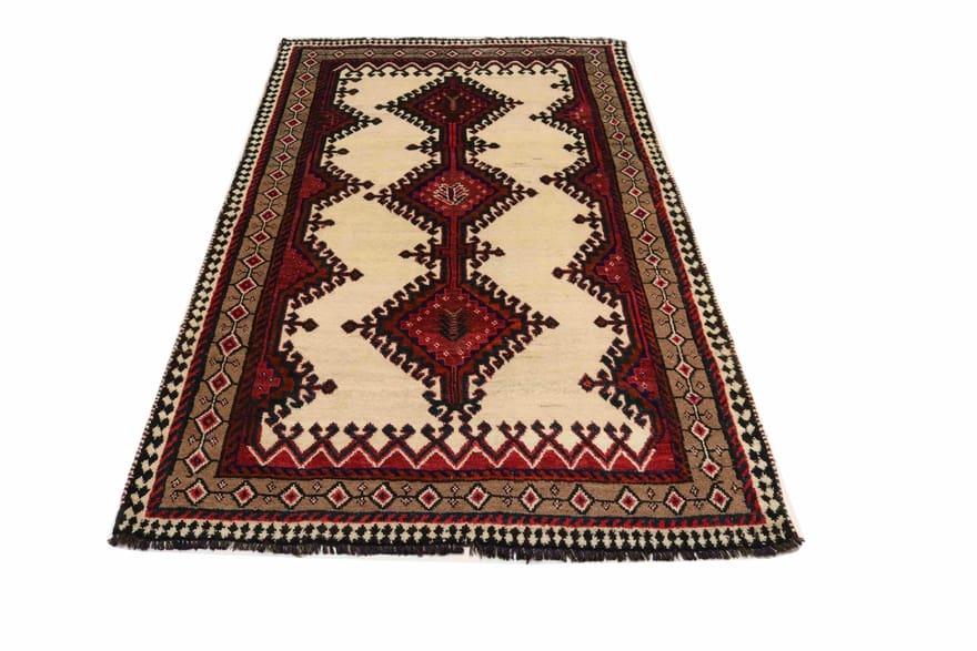Hochwertiger Ghashghai Teppich | Knotendichte: 160.000 – 200.000 Knoten/m² | Material: 100% Wolle | Größe: 199×113 cm | Farbe: Weiß/Beige | Zustand: Neu | Ursprung: Iran/Persien | Florhöhe: ca. 10 mm | Handgeknüpft | Form: Rechteckig