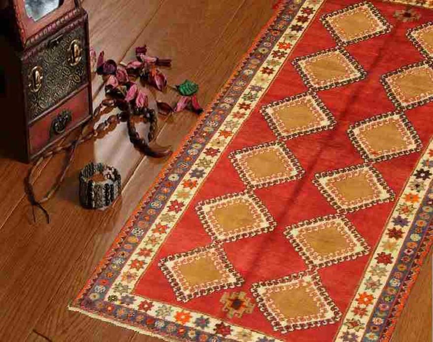 Handgeknüpfter Ghashghai Teppich | Knotendichte: 160.000 – 200.000 Knoten/m² | Material: 100% Wolle für Kette, Schuss und Flor | Größe: 252×133 cm | Farbe: Rot/Orange | Zustand: Neu | Herkunft: Iran/Persien | Dicke: ca. 10 mm | Gewicht: ca. 20 kg
