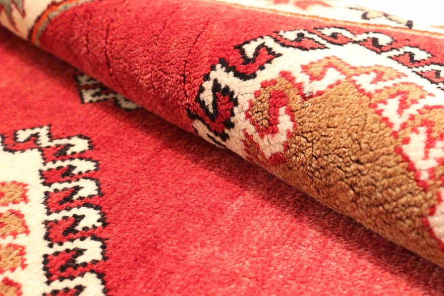 Der Teppich ist aus hochwertiger Wolle handgeknüpft, was ihm eine hohe Strapazierfähigkeit und eine angenehme Haptik verleiht.