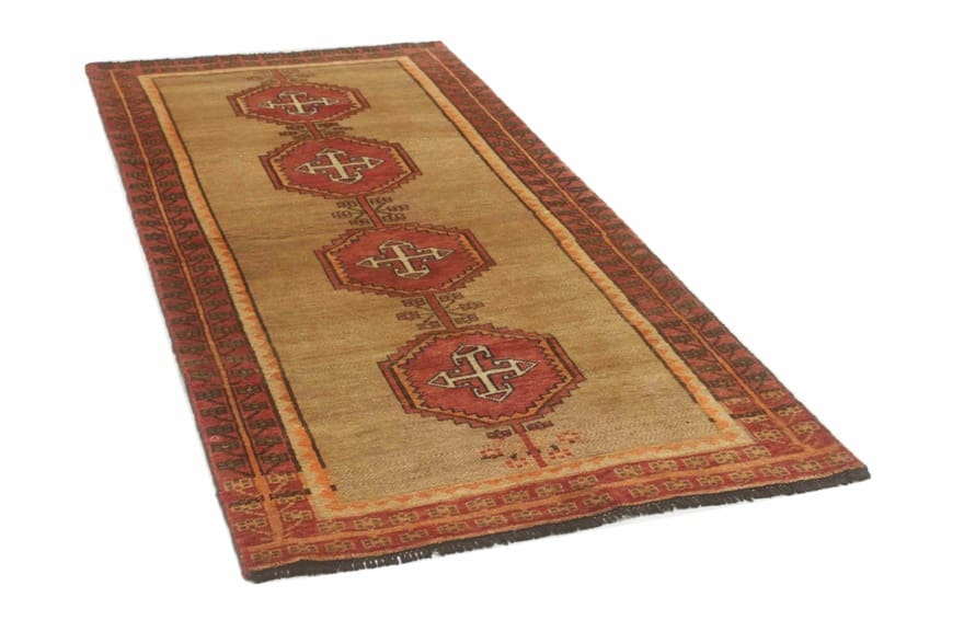 Authentischer Ghashghai-Teppich | Knotendichte: 160.000 – 200.000 Knoten/m² | Material: 100% Wolle | Größe: 254×117 cm | Farbe: Braun/Gelb | Zustand: Neu | Herkunft: Iran / Persien | Florhöhe: ca. 10 mm | Gewicht: ca. 10 kg