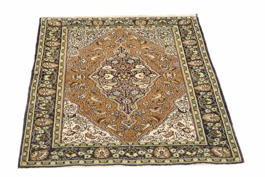 Ghom Orientteppich – Handgeknüpft, Wolle, Tiermotive