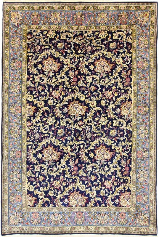 Ghom Teppich | Knotendichte: 320.000 – 360.000 Knoten/m² | Material: Handgesponnene Wolle und Baumwolle | Größe: 329×223 cm | Zustand: Neu | Farbe: Blau/Türkis | Herkunft: Iran/Persien | Verarbeitung: Handgeknüpft