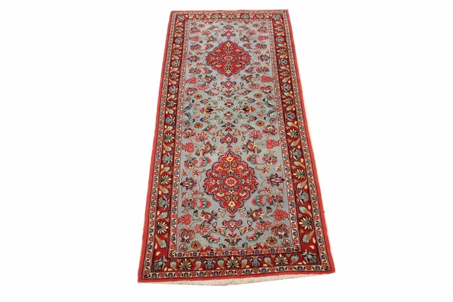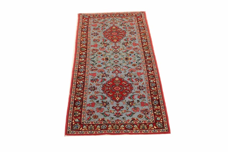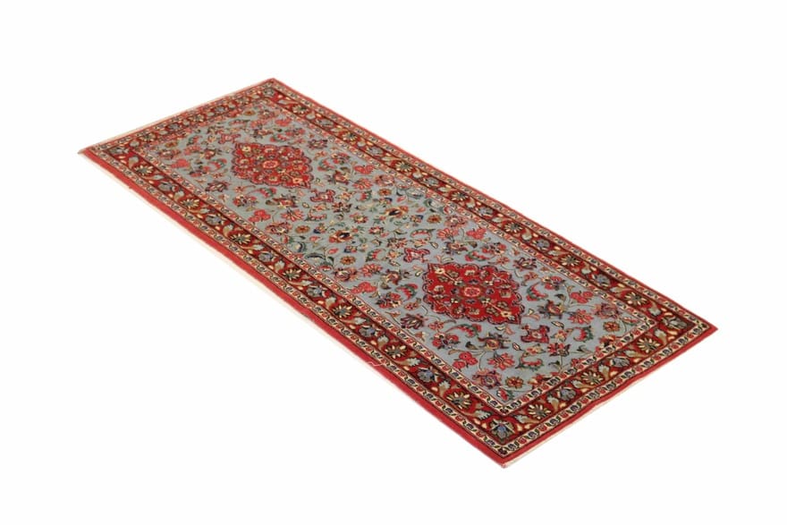 Handgeknüpfter Ghom Teppich | Knotendichte: 320.000 – 360.000 Knoten/m² | Material: Handgesponnene Wolle und Baumwolle | Größe: 202×80 cm | Farbe: Blau/Türkis | Zustand: Neu | Ursprung: Iran / Persien