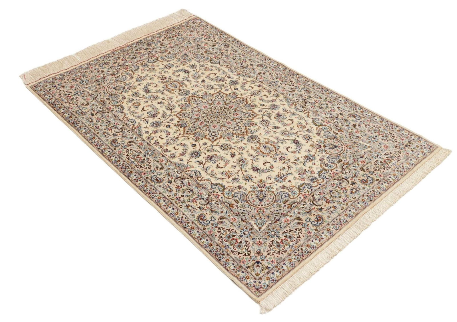 Ghom Teppich | Knotendichte: ca. 900.000 Knoten/m² | Flor: 100% Seide | Kette: 100% Seide | Größe: 102 x 150 cm | Handgeknüpft | Herkunft: Iran | Höhe: ca. 4 mm | Exklusive und hochwertige Verarbeitung
