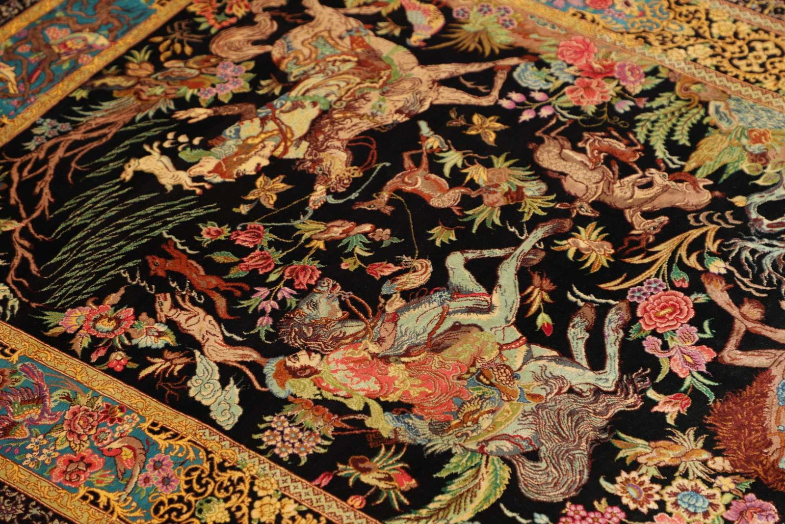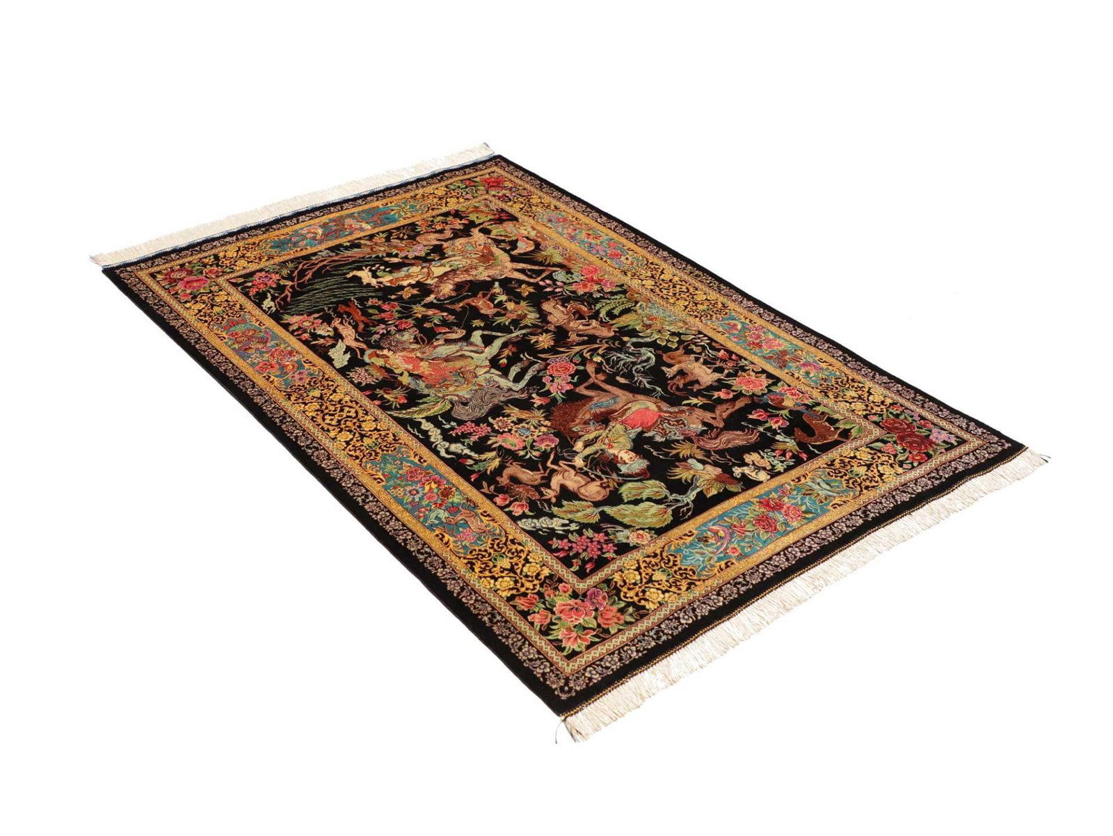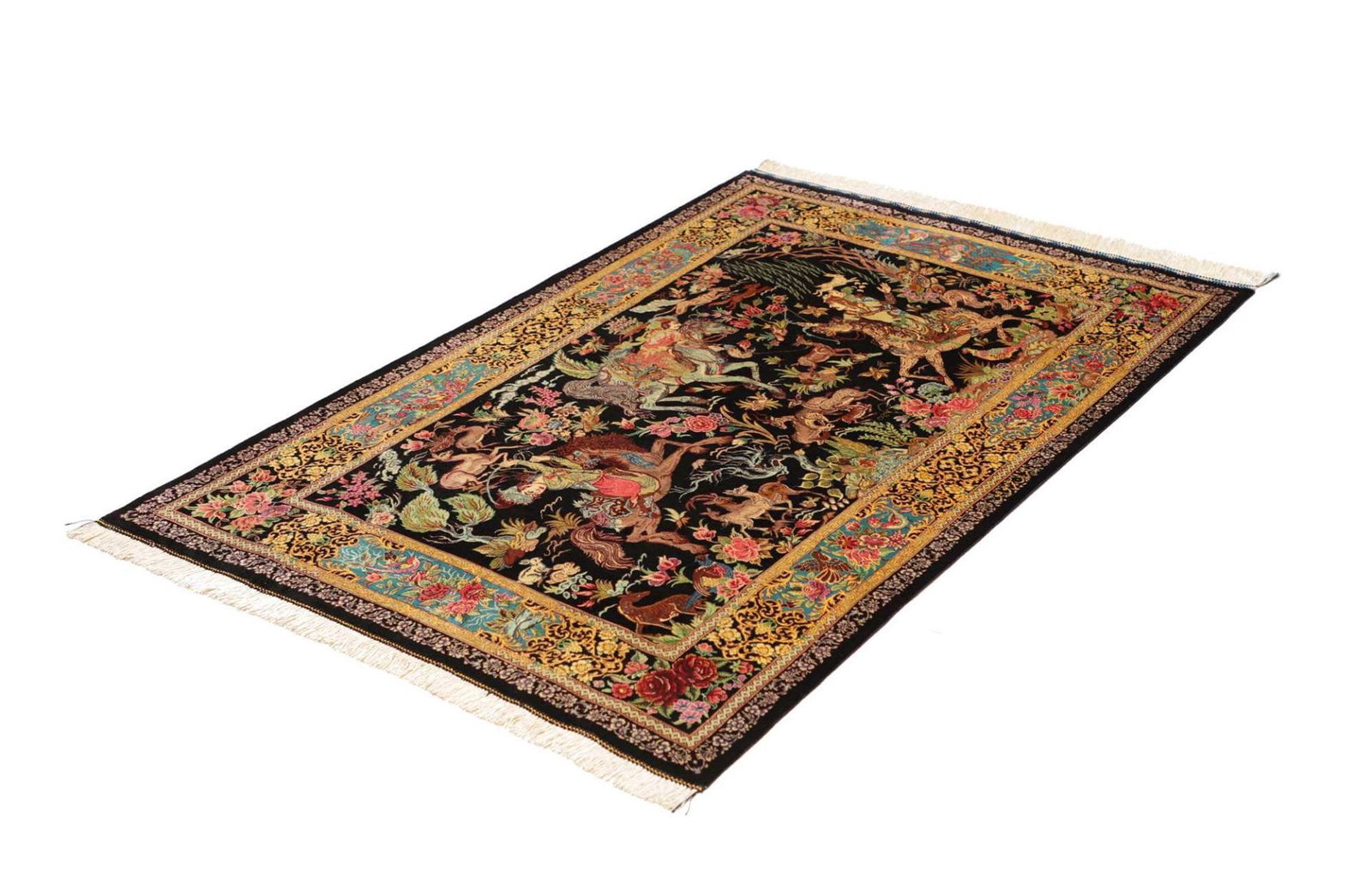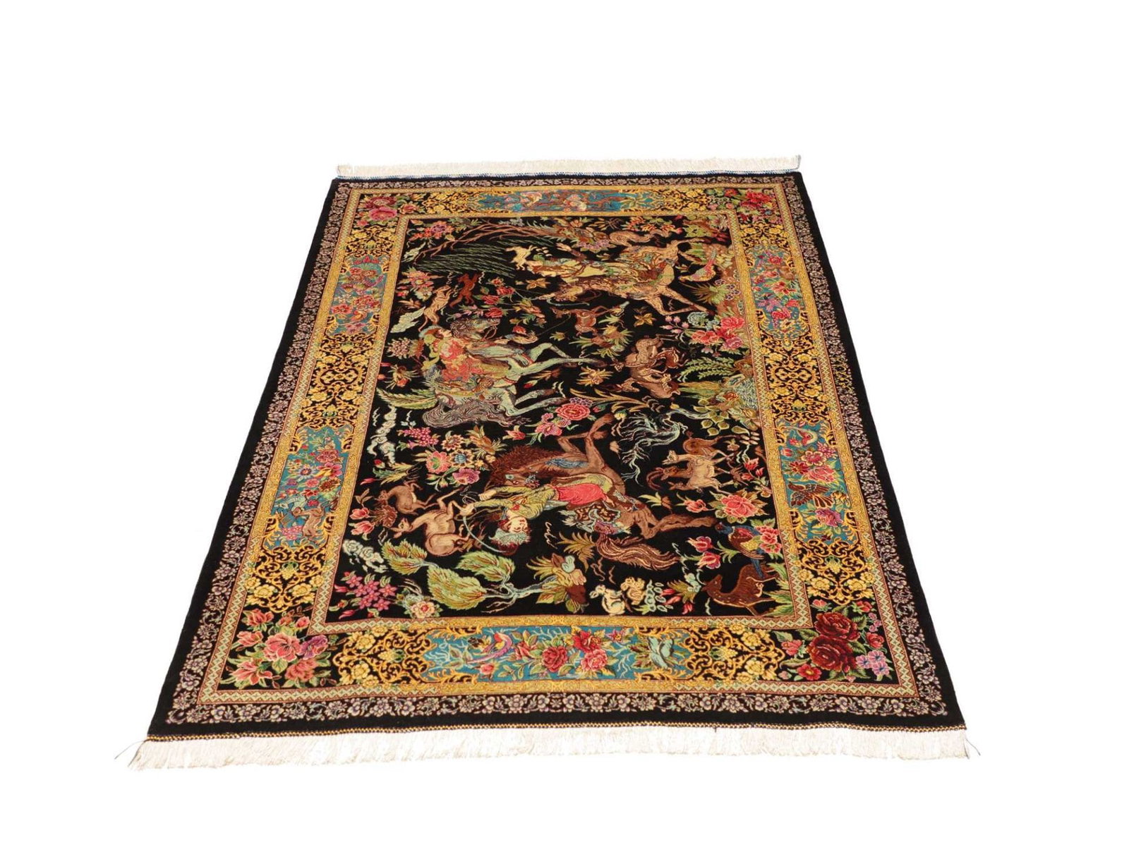 Ghom Teppich | Knotendichte: ca. 900.000 Knoten/m² | Material: 100% Seide | Größe: 103 x 148 cm | Handgeknüpft | Herkunft: Iran | Höhe: ca. 4 mm | Exklusive florale und geometrische Muster