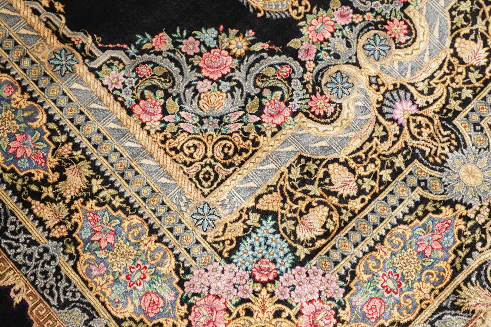Dank seiner luxuriösen Seidenmaterialien ist der Teppich zudem besonders pflegeleicht und behält auch nach Jahren seine Farbenpracht und seinen Glanz. Daher ist er auch eine hervorragende Investition, die sowohl stilistisch als auch finanziell überzeugt.