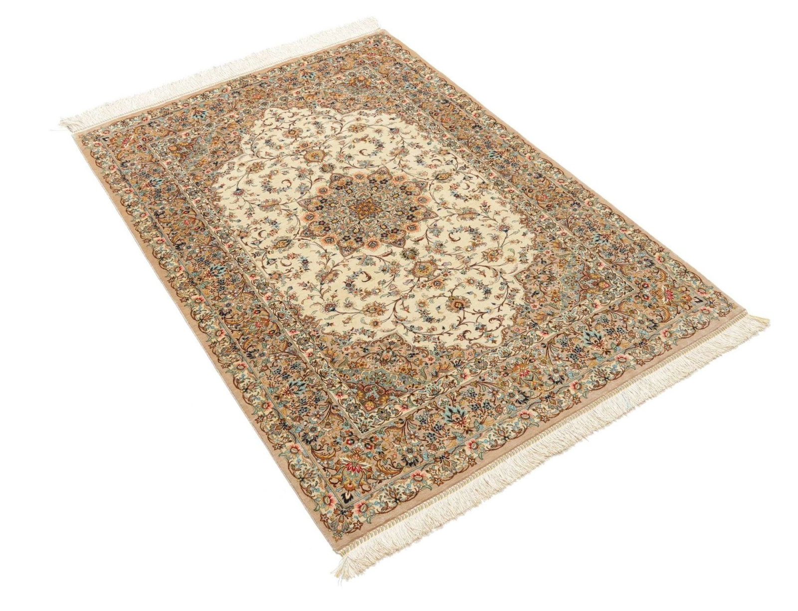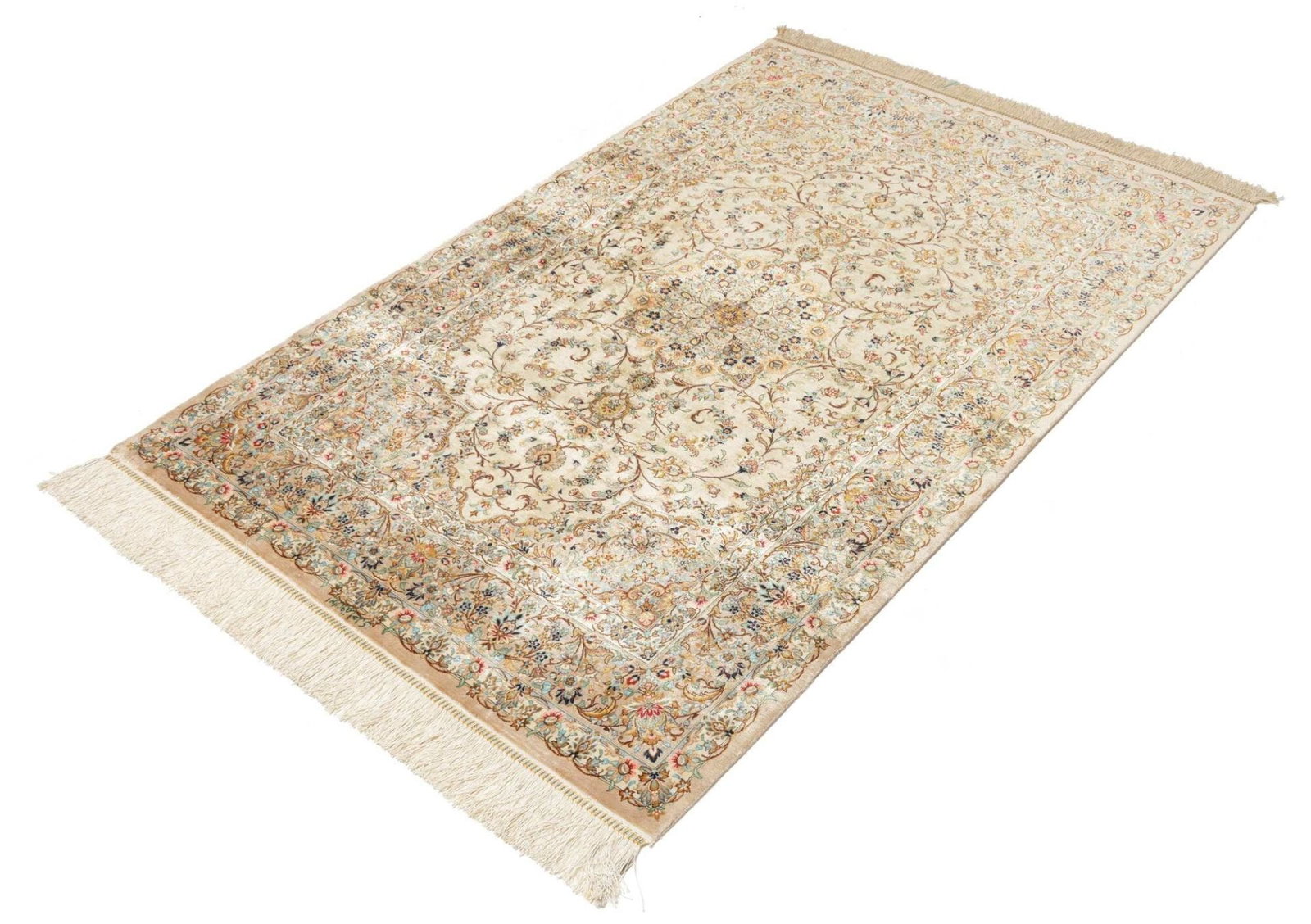 Ghom Teppich 105 x 150 cm, Seide, florale Muster, handgeknüpft