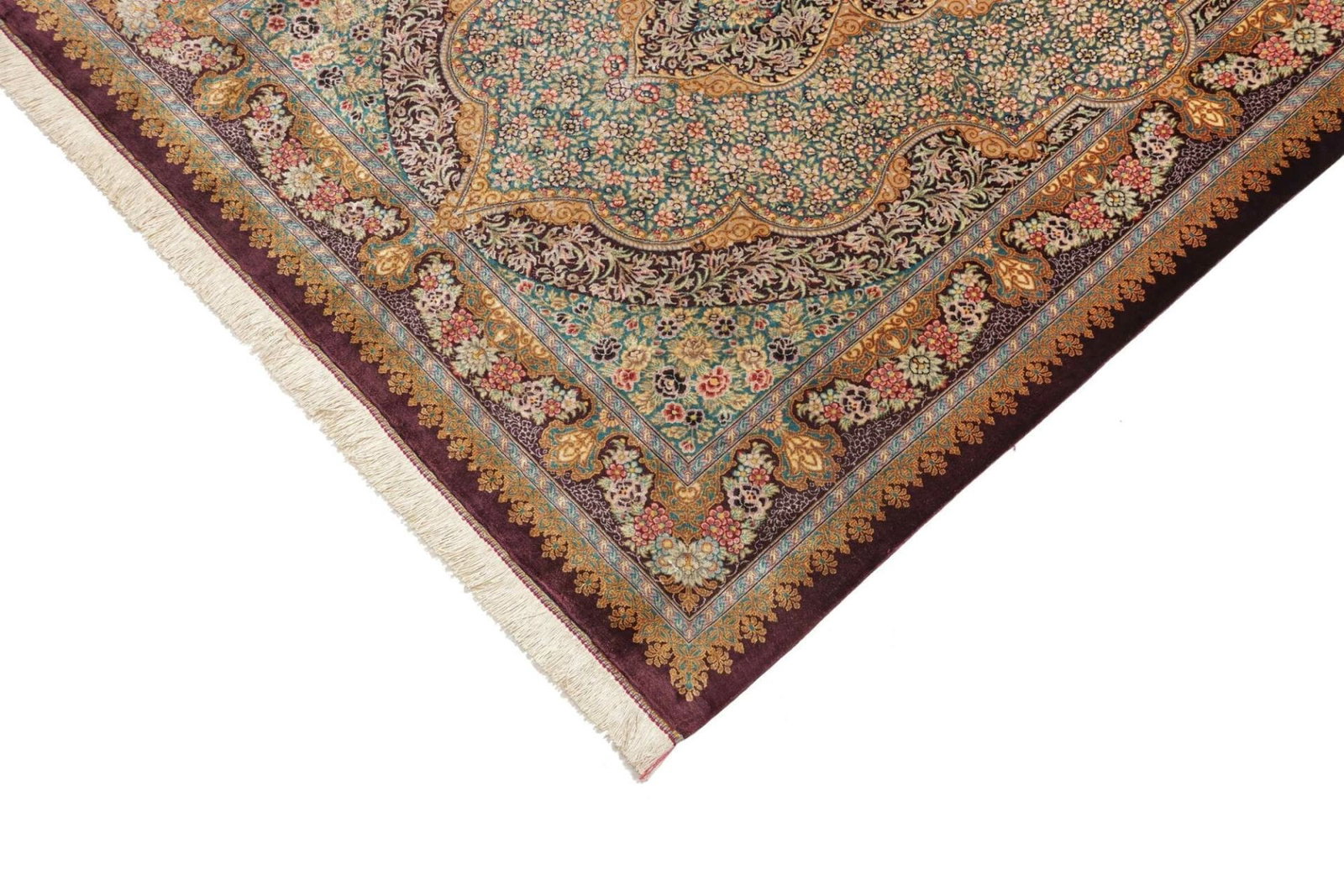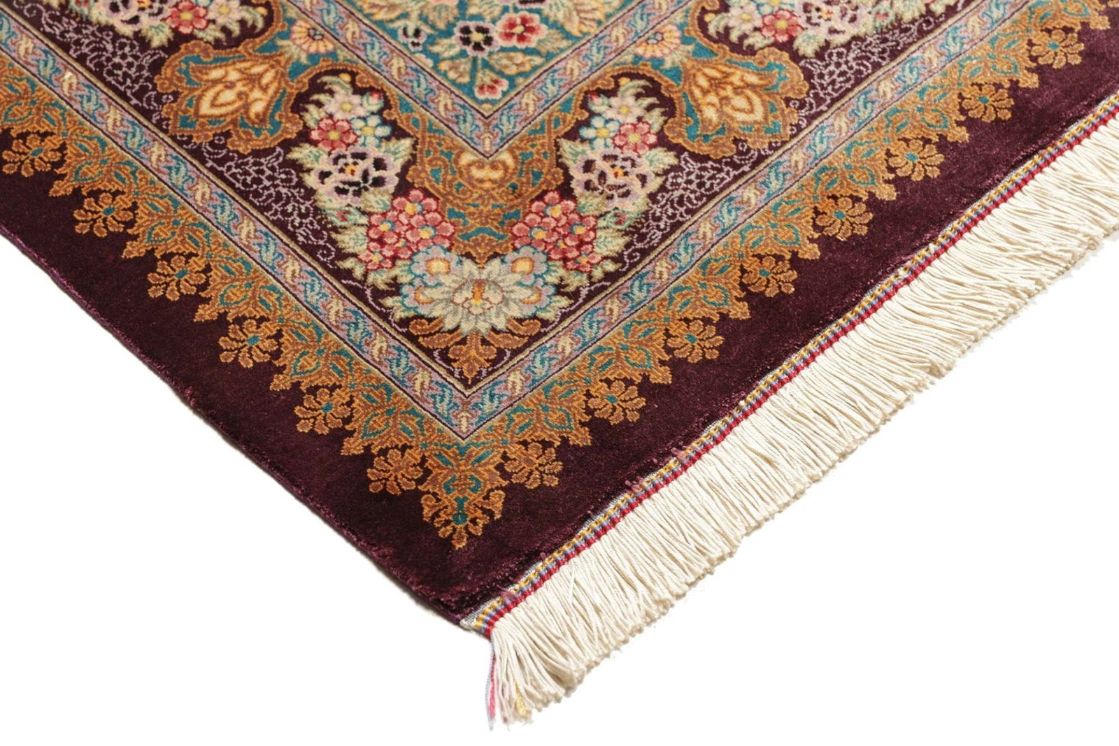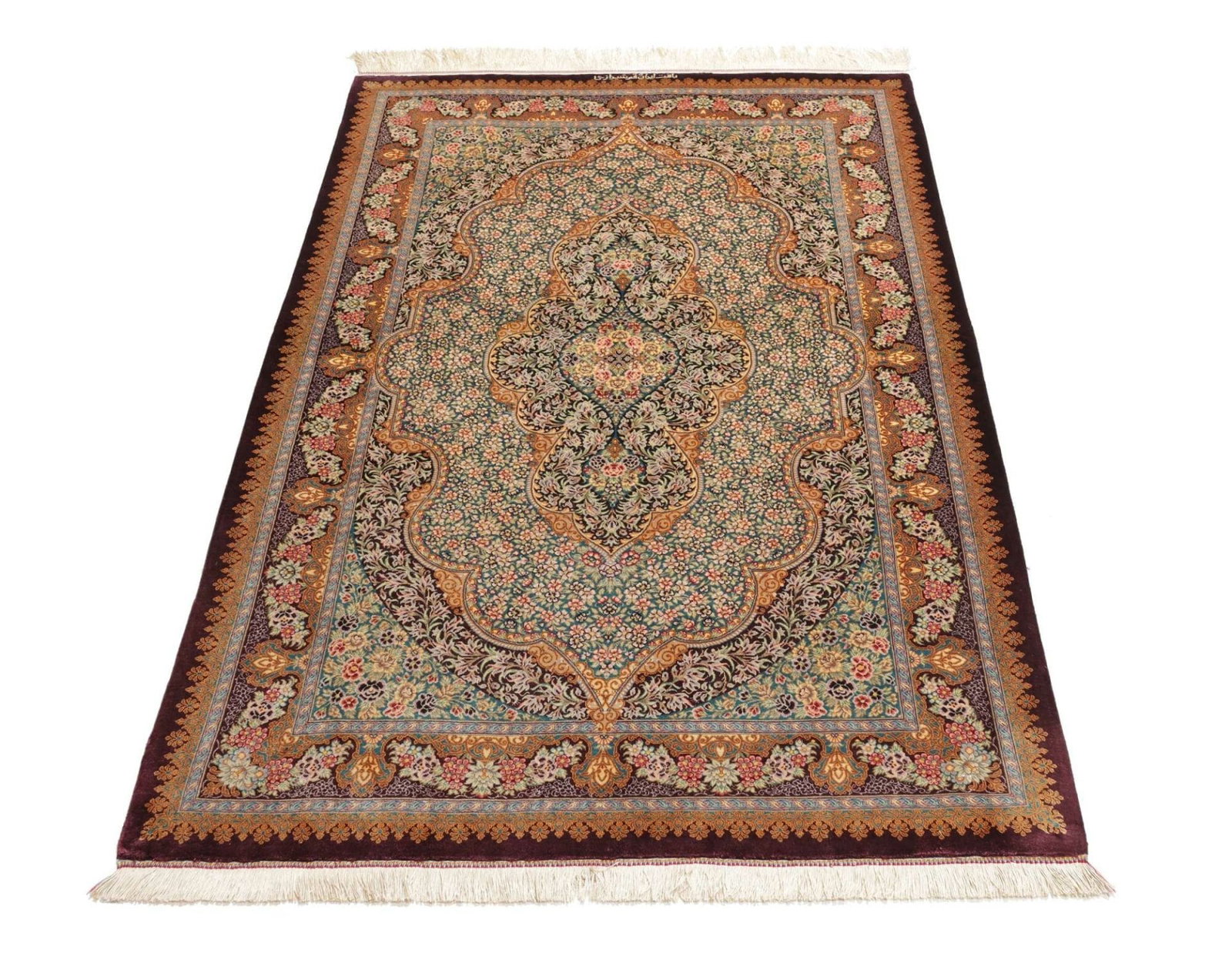 Ghom Teppich 105 x 153 cm, Seide, handgeknüpft, Perserteppich
