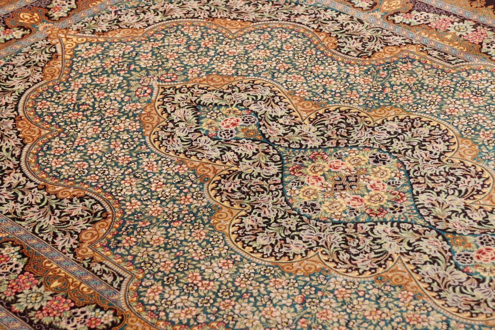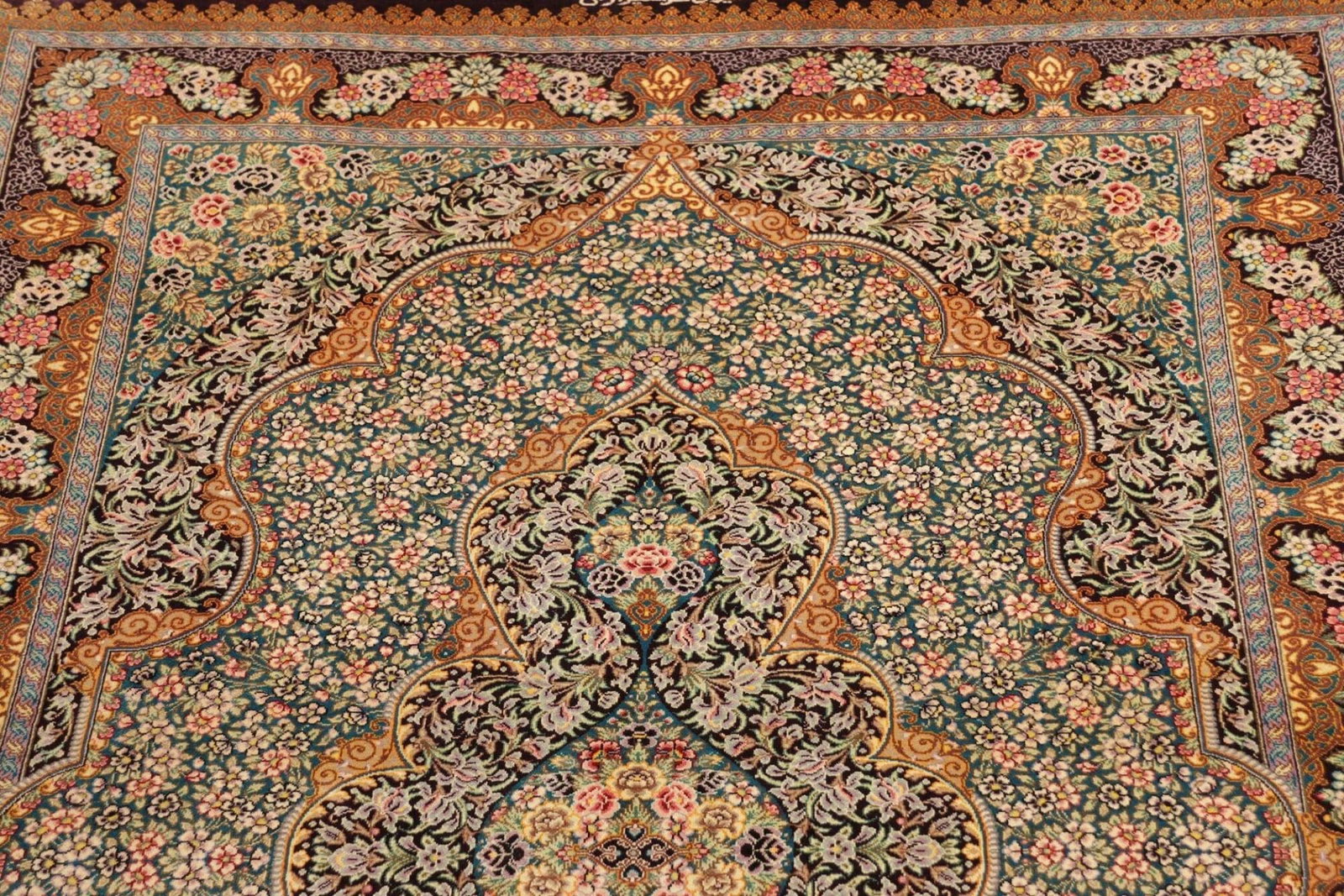 Die edlen Materialien, die für diesen Teppich verwendet werden, insbesondere die hochwertige Seide, verleihen ihm nicht nur eine unvergleichliche Haptik, sondern auch eine brillante Farbintensität. Wie bei Ghom Teppichen üblich, sorgt die hohe Knotendichte für eine außerordentliche Strapazierfähigkeit sowie eine detailreiche Darstellung der Muster. Diese Eigenschaften machen den Teppich zu einer langfristigen Investition in die eigene Wohnkultur.