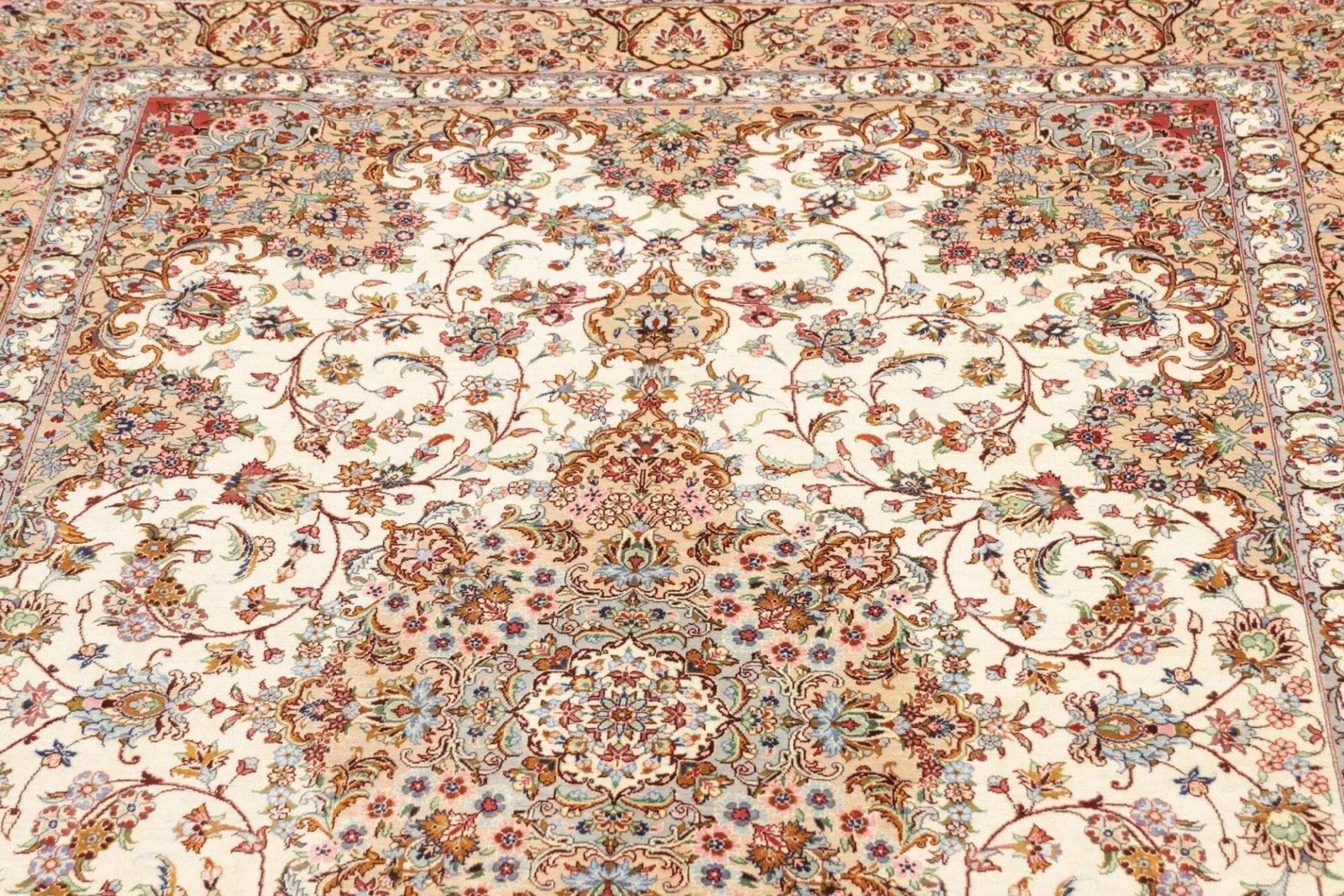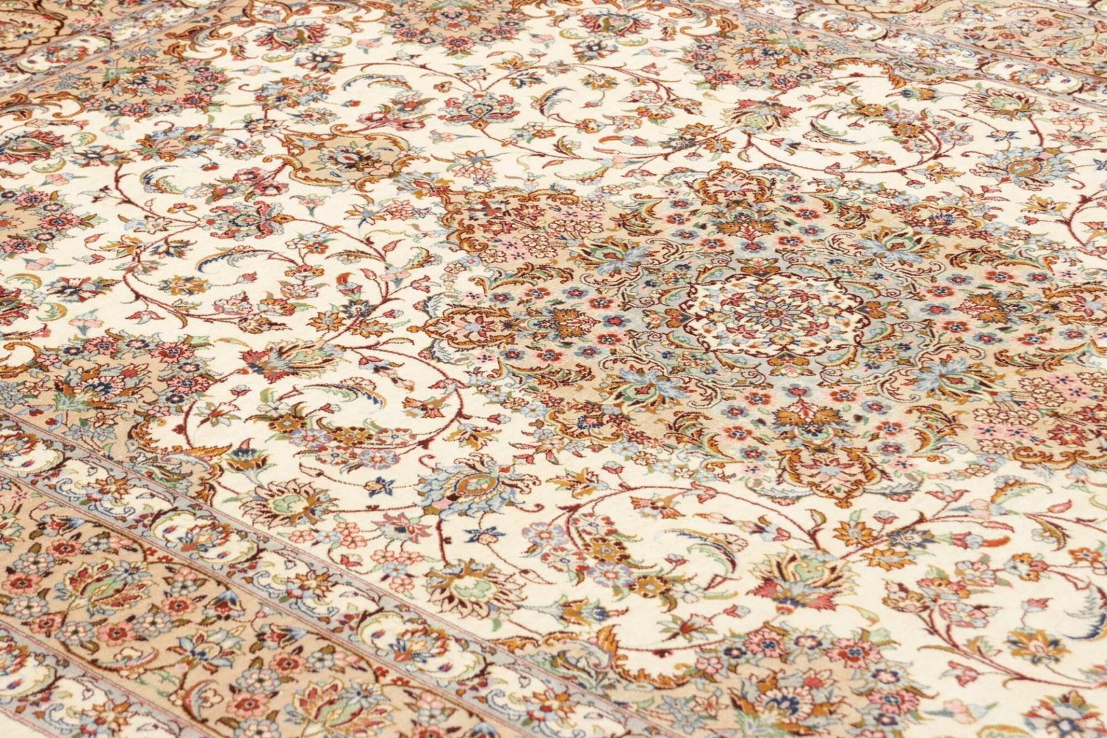 5010$Ursprünglicher Preis war: 5010$1497$Aktueller Preis ist: 1497$ Weiterlesen(Verkauft) W1 (#203) ca. 345x245cm NEU Handgeknüpfter Nain Perserteppich mit Seide 12la