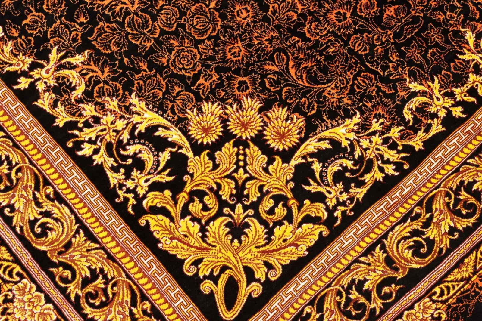 Der Ghom Teppich wird aus feiner Seide gefertigt, einem Material, das für seine Geschmeidigkeit und seinen Glanz bekannt ist. Seidenteppiche sind nicht nur optisch ansprechend, sondern auch besonders langlebig und pflegeleicht. Die Kombination aus überlegener Handwerkskunst und hochwertigen Materialien macht diesen Teppich zu einem Luxusobjekt, das höchsten Ansprüchen gerecht wird. Der handgeknüpfte Teppich ist mit einer hohen Knotendichte gearbeitet, die nicht nur die Langlebigkeit erhöht, sondern auch die detail-genaue Darstellung von Mustern und Designs ermöglicht. Jeder Knoten ist von erfahrenen Kunsthandwerkern mit viel Geduld und Liebe zum Detail gesetzt, was sich in der feinen und präzisen Ausführung des gesamten Teppichs widerspiegelt.