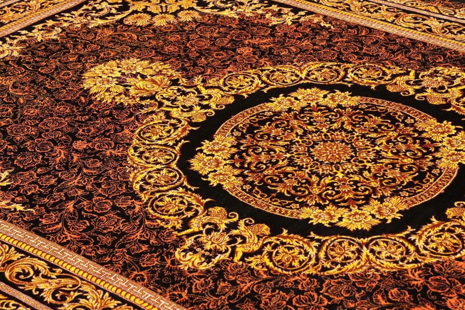 Der Ghom Teppich ist nicht nur ein Bodenbelag, sondern ein Kunstwerk für sich. Seine faszinierenden Muster und die spitzen Farben sind eine Hommage an die reichhaltige Kultur des Iran. Typische Designs umfassen florale Motive, geometrische Muster und oft auch figürliche Darstellungen, die Geschichten erzählen oder spirituelle Bedeutungen tragen. Der Glanz der Seide lässt die Farben lebendig erscheinen und verleiht jedem Raum eine angenehme Atmosphäre. Die Kombination aus Tradition und moderner Ästhetik macht diesen Teppich besonders vielseitig – ob in einem klassischen Einrichtungsstil oder in einer modernen Wohnung, der Ghom Teppich fügt sich harmonisch ein und wird zum Blickfang jeder Einrichtung.