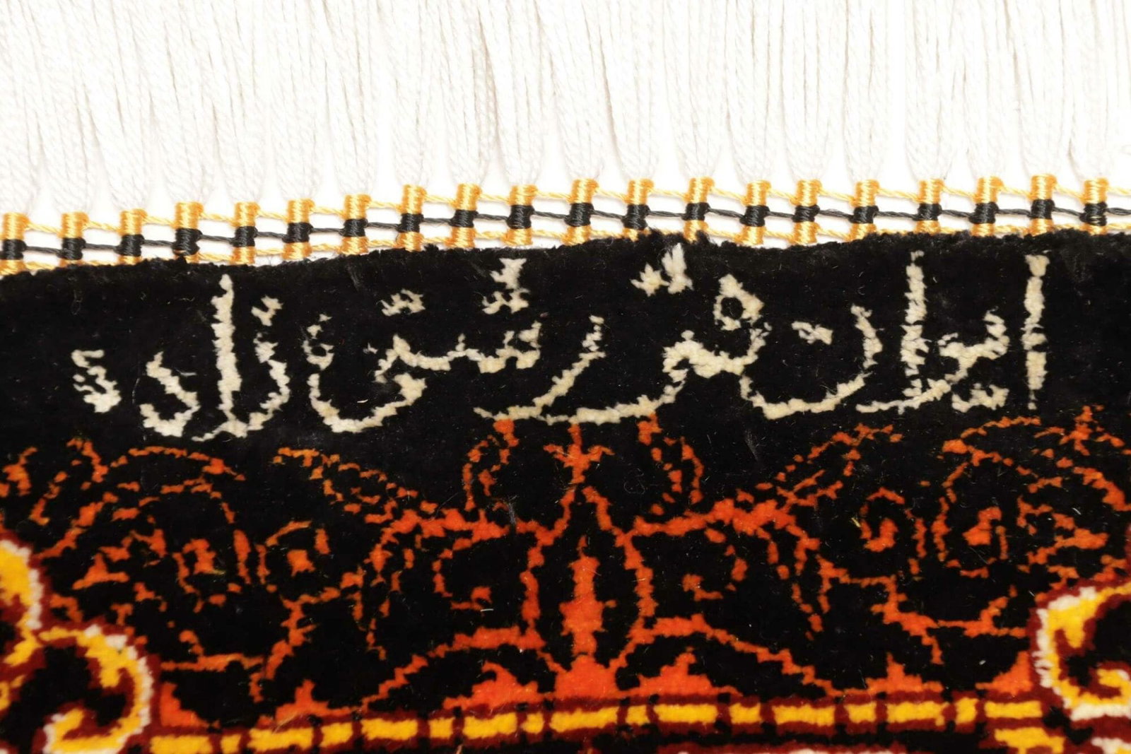 Dieser Ghom Teppich stammt aus der gleichnamigen Stadt Ghom im Iran, einer Region, die berühmt ist für ihre erstklassigen Perserteppiche. Ghom ist bekannt für seine reiche Tradition in der Teppichknüpfkunst und zieht viele Künstler und Handwerker an, die ihre Fähigkeiten über Generationen совершенάζεται haben. Die Teppiche aus Ghom zeichnen sich durch ihre vielfältigen Muster und Farbpaletten aus, welche die christliche, muslimische und persische Kultur widerspiegeln. Ghom Teppiche sind oftmals mit Symbolen und Motiven geschmückt, die tief in der iranischen Kultur verwurzelt sind, und sie stehen für die Harmonie zwischen Kunst und Handwerk. Ihre Exklusivität und die Verwendung von hochwertigen Materialien machen sie zu einem geschätzten Besitztum.