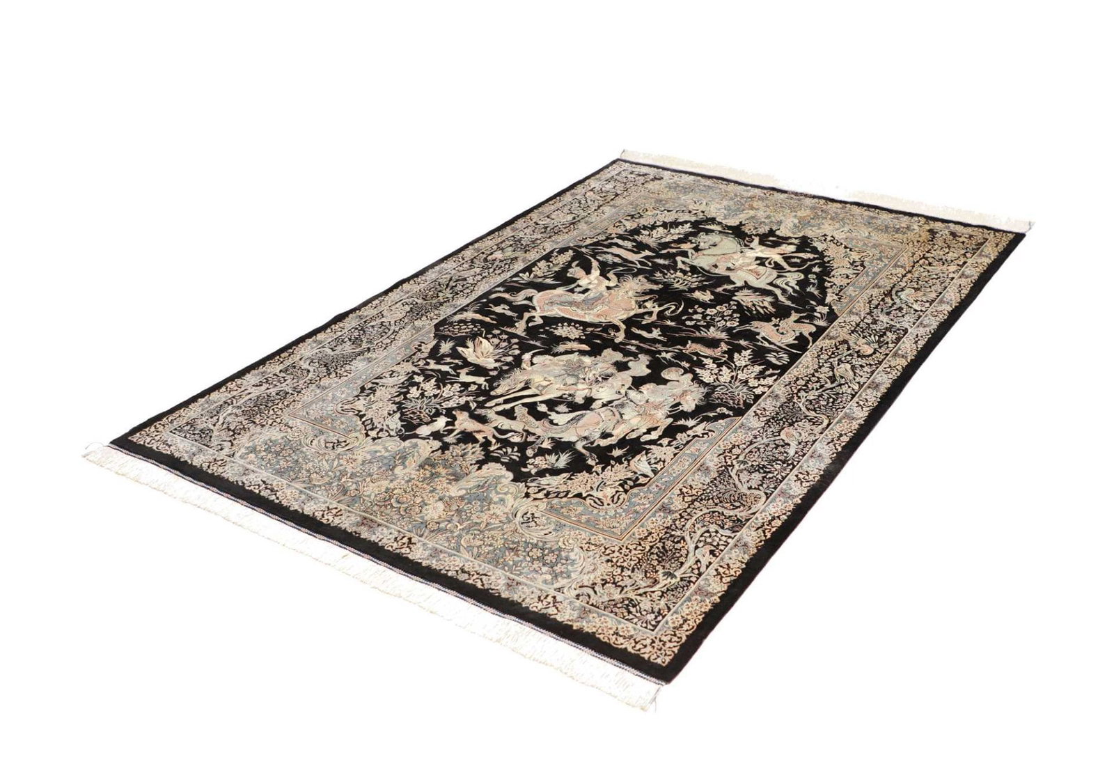 Ghom Teppich 140 x 202 cm, Seide, handgeknüpft, Perserteppich