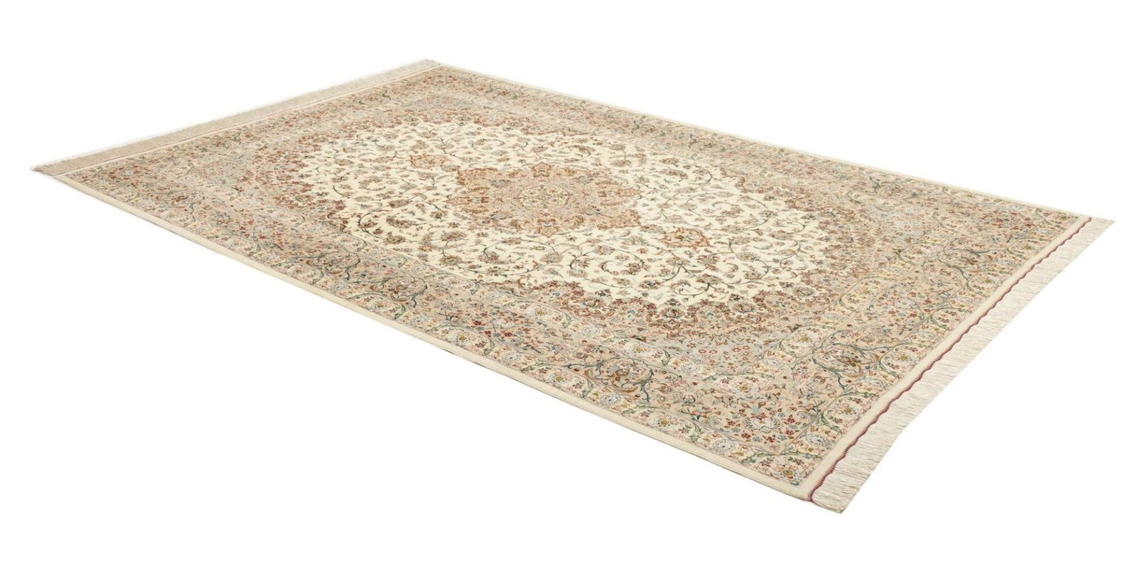 Ghom Teppich 196 x 298cm, 900K/Qm Seide, florales Muster, handgeknüpft