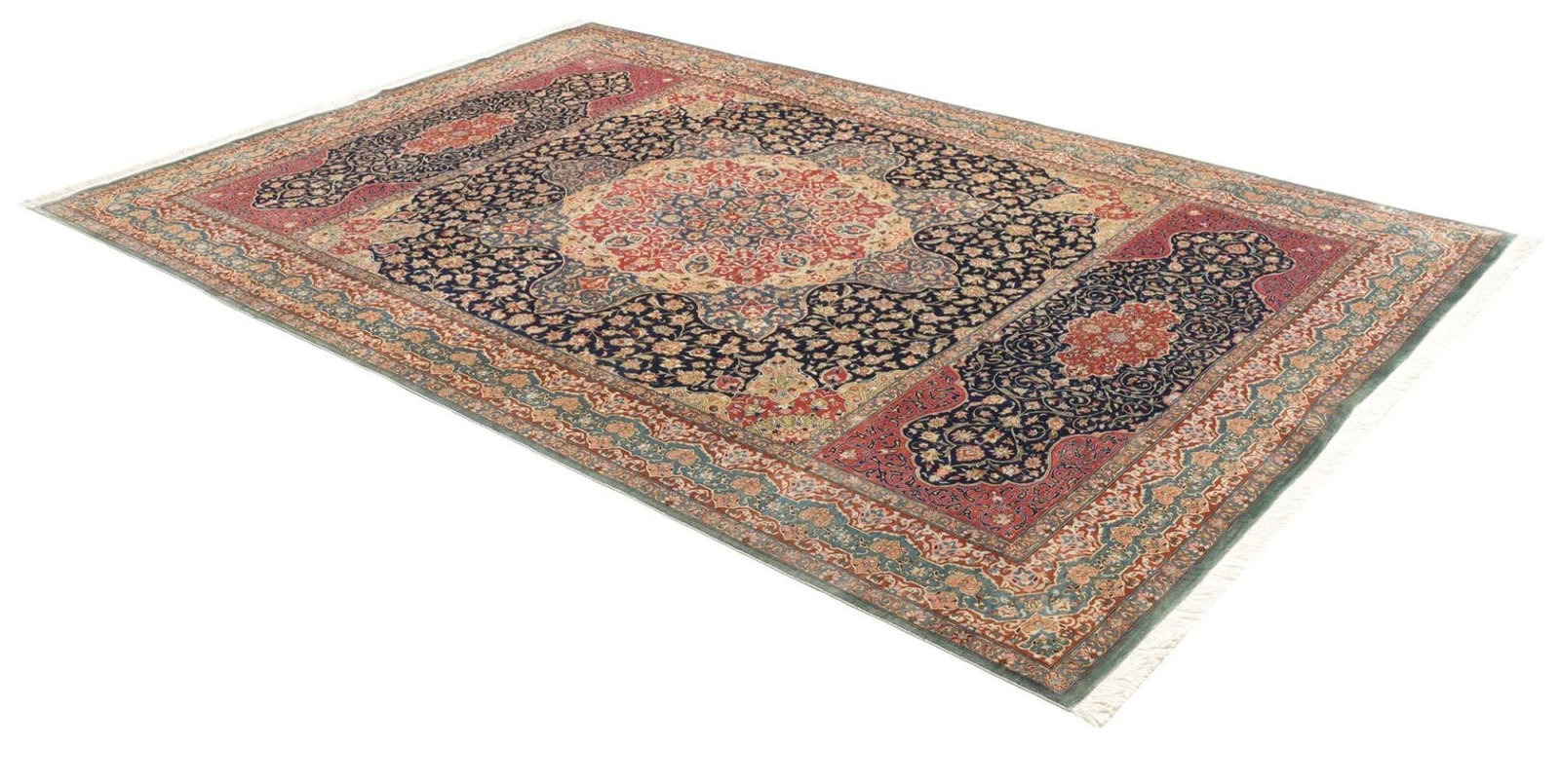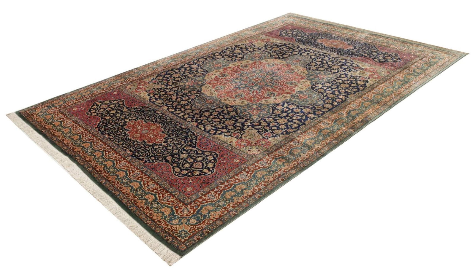 Ghom Teppich 198 x 298cm, Seide, handgeknüpft, Perserteppich H1