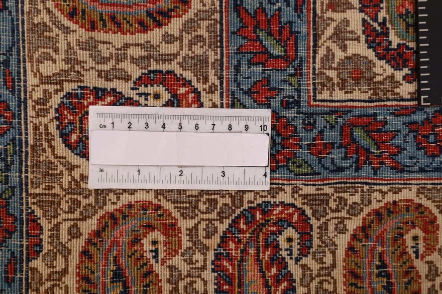 Die handgeknüpfte Technik, die bei der Herstellung dieses Teppichs angewandt wird, sorgt für eine beeindruckende Knotendichte. Jeder Schuss Wolle wird mit größter Sorgfalt verarbeitet, was zu einem dichten und strapazierfähigen Flor führt. Dies hat zur Folge, dass der Teppich nicht nur schön anzusehen ist, sondern auch für den täglichen Gebrauch geeignet ist. Darüber hinaus ermöglicht die Zähigkeit der Qom-Wolle eine einfache Pflege und hält den Teppich auch nach vielen Jahren in einem hervorragenden Zustand.