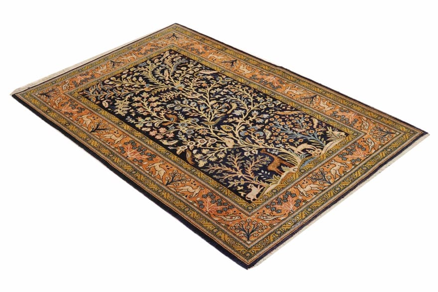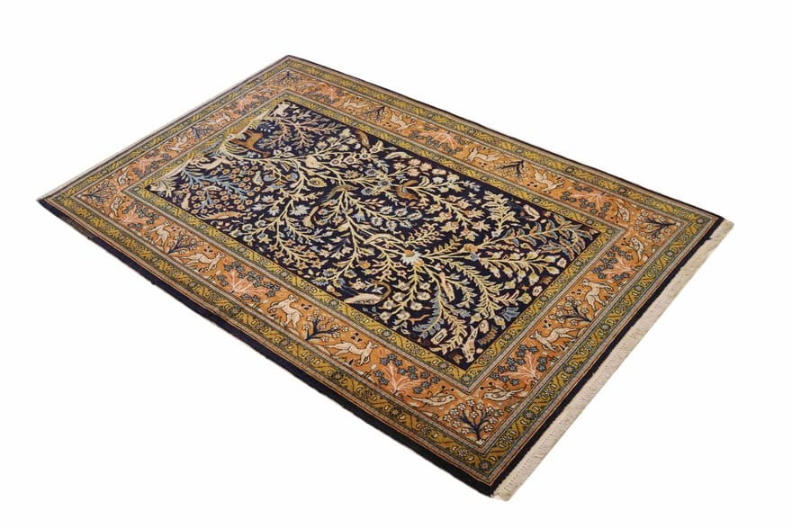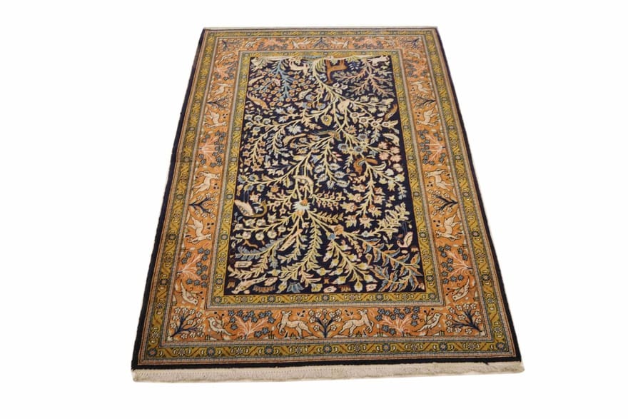 Ghom Teppich 219×141 cm, handgeknüpft, 100% Seide, Luxus Orientteppich