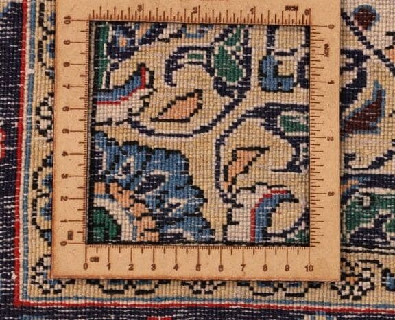 Der Teppich besticht durch seine hohe Knotendichte, die für eine lange Haltbarkeit und Strapazierfähigkeit sorgt. Diese hohe Qualität ist charakteristisch für handknüpfte Teppiche und hebt die Wertigkeit und Exklusivität dieses Ghom Teppichs hervor. Er ist nicht nur ein Bodenbelag, sondern ein Kunstwerk, das Ihnen durch seine Schönheit und Eleganz über viele Jahre hinweg Freude bereiten wird.
