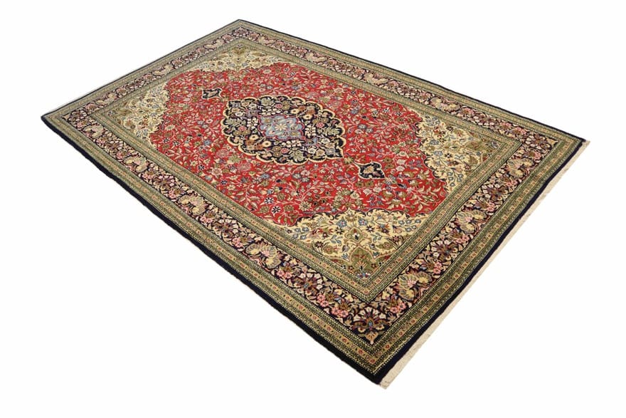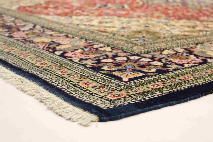 Um die Schönheit Ihres Ghom Teppichs zu bewahren, empfiehlt es sich, ihn regelmäßig zu reinigen, idealerweise durch eine professionelle Teppichreinigung. Bei leichten Verschmutzungen können Sie sanft mit einem Staubsauger ohne Bürstenaufsatz über die Oberfläche gehen. Verwenden Sie bei Flecken nur milde Seifenlösungen und tupfen Sie den Fleck vorsichtig ab.
