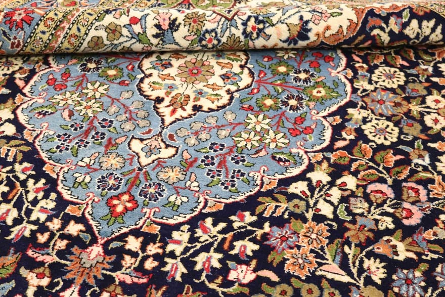 Ghom ist eine Stadt in zentralen Iran, die traditionell für ihre exquisiten Teppiche bekannt ist. Diese Region hat eine lange Geschichte in der Teppichproduktion, die bis ins 15. Jahrhundert zurückreicht. Ghom Teppiche sind berühmt für ihre feinen Muster und die Verwendung von Seide sowie für die beeindruckende Farbpalette, die häufig kräftige Rottöne, sanfte Beigetöne und edle Blautöne umfasst. Die Kunst des Teppichknüpfens ist in dieser Region tief verwurzelt und wird von Generation zu Generation weitergegeben, wodurch ein unvergleichliches handwerkliches Wissen und Können bewahrt bleibt.