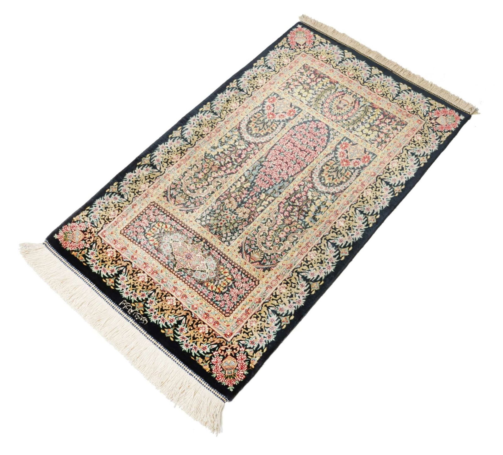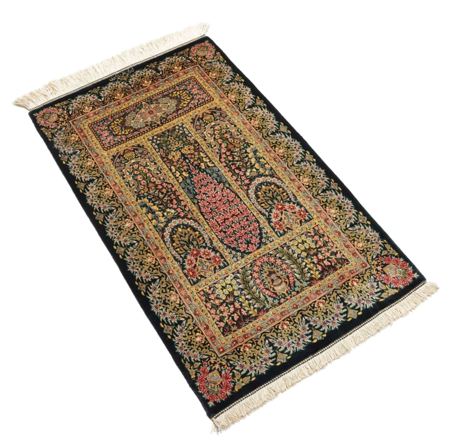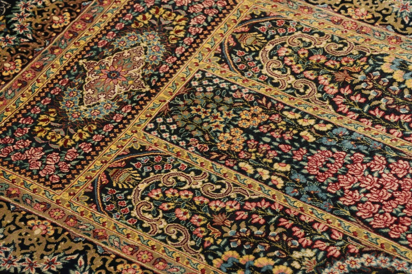 Ghom Teppich | Knotendichte: ca. 900.000 Knoten/m² | Material: 100% Seide | Größe: 60 x 97 cm | In ausgezeichnetem Zustand | Herkunft: Iran | Provenienz: Ghom | Höhe: ca. 4 mm | Handgeknüpft