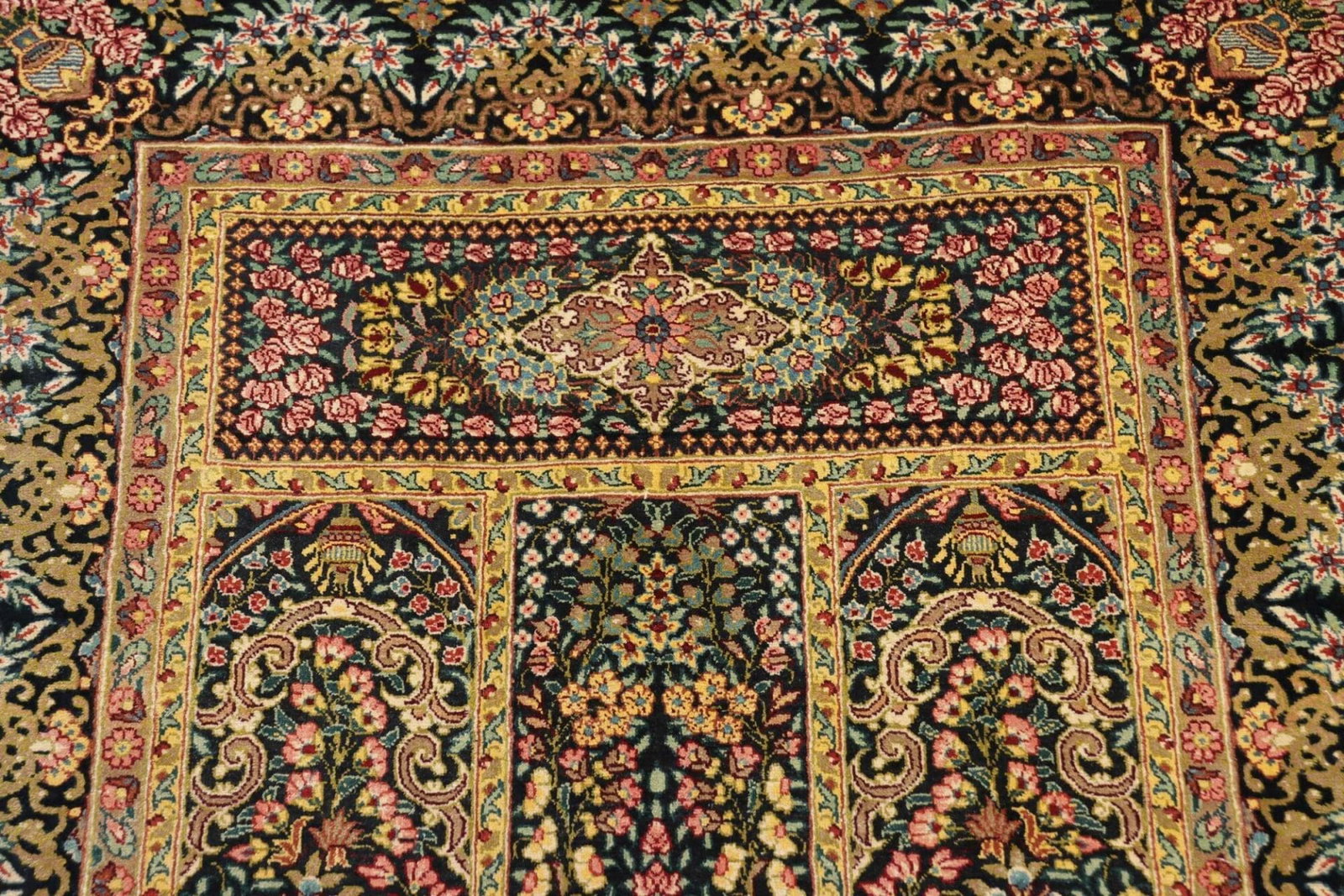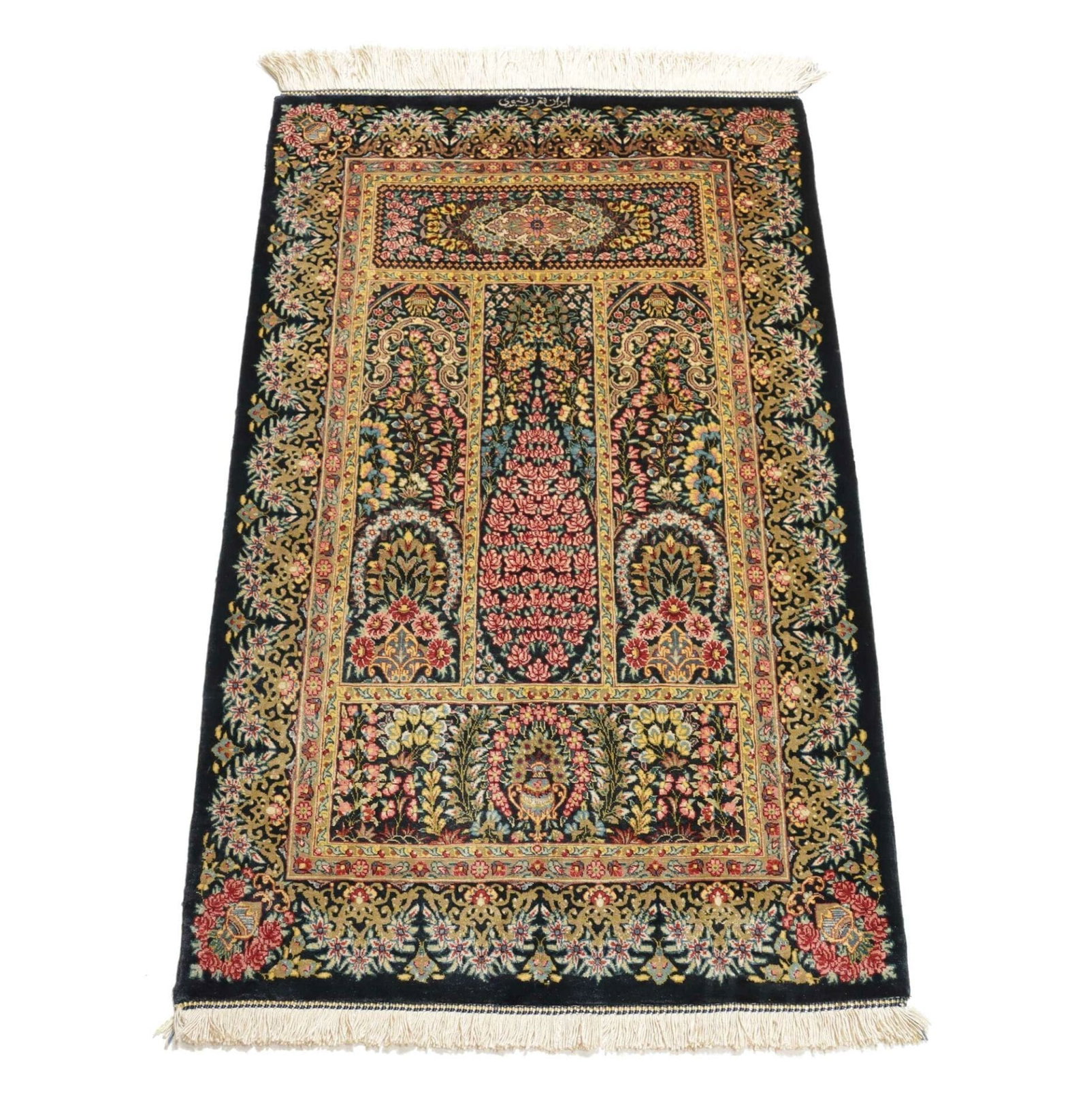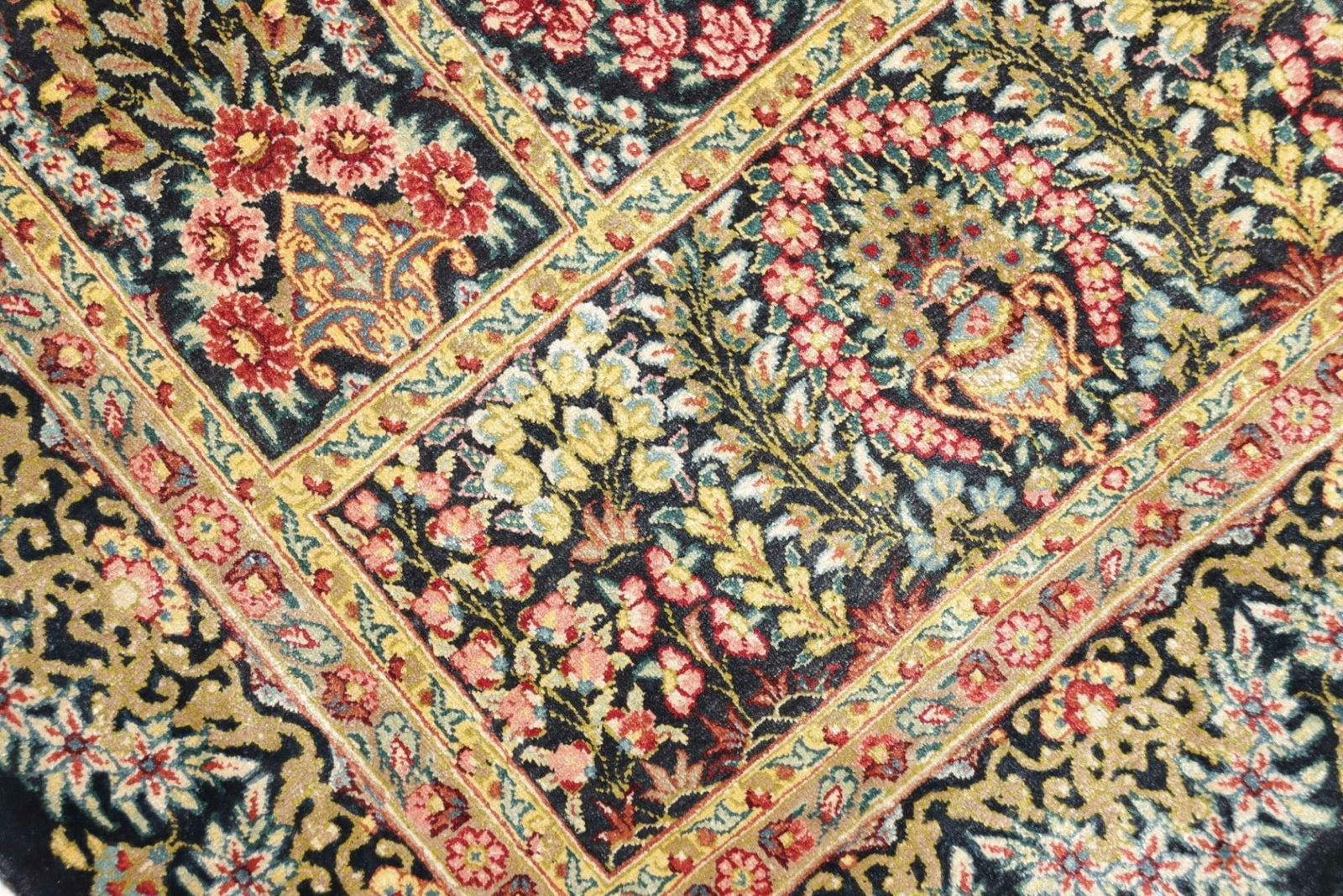 Ghom Teppich | Knotendichte: ca. 900.000 Knoten/m² | Material: 100% Seide | Größe: 60 x 97 cm | In ausgezeichnetem Zustand | Herkunft: Iran | Provenienz: Ghom | Höhe: ca. 4 mm | Handgeknüpft