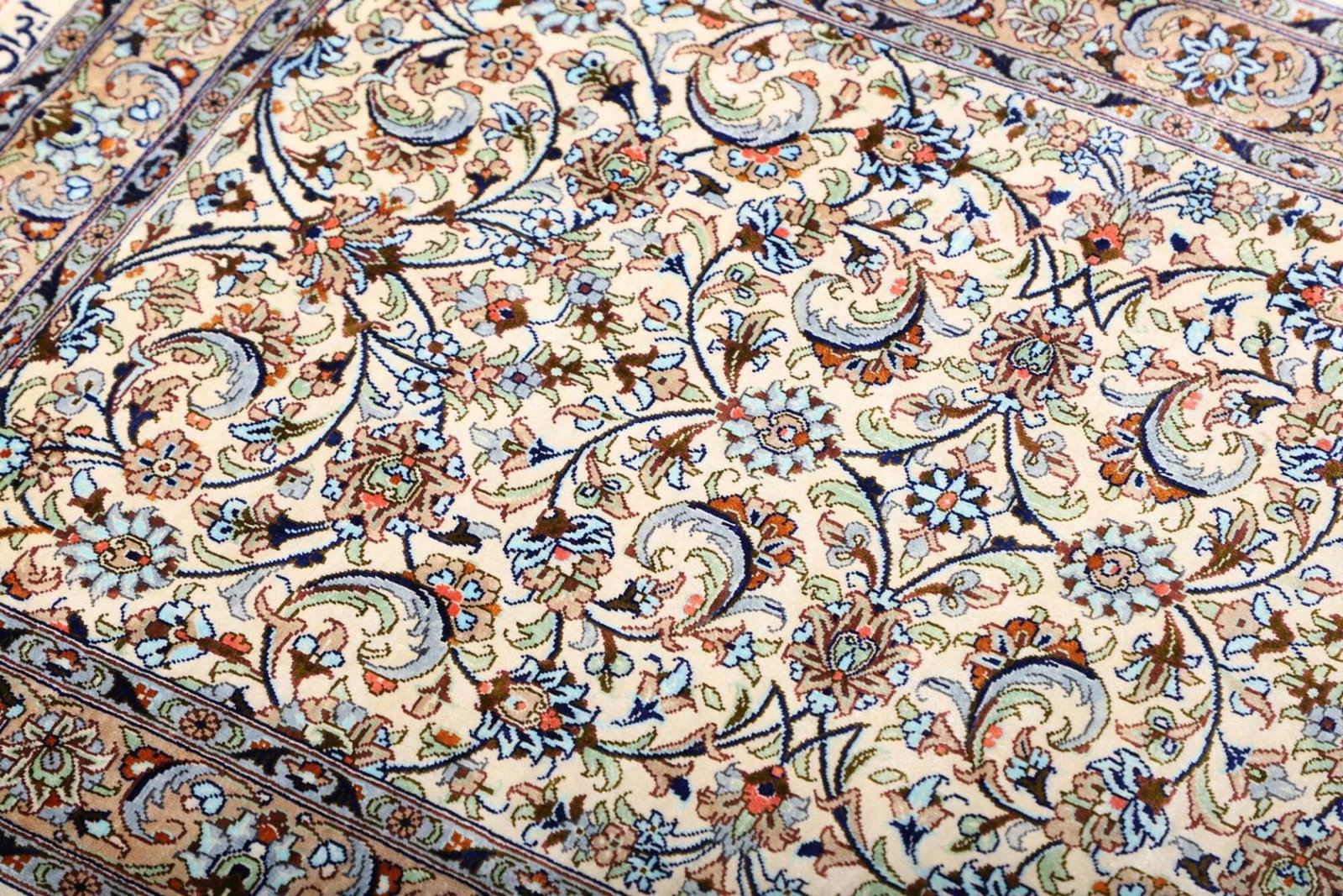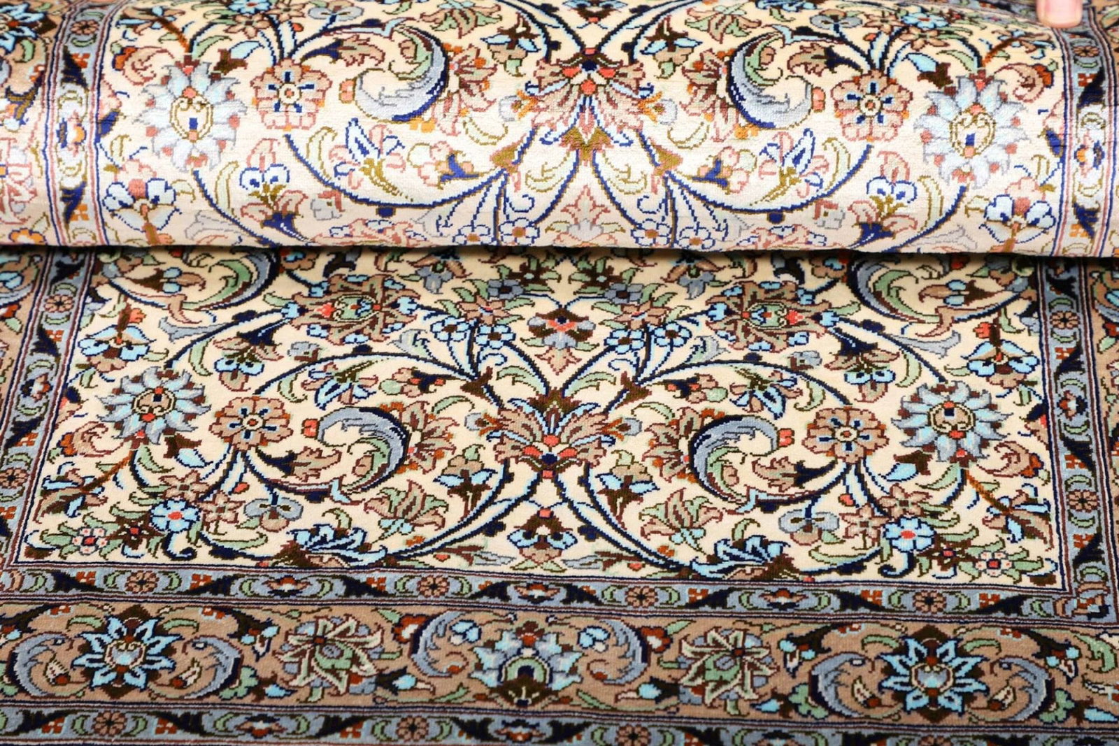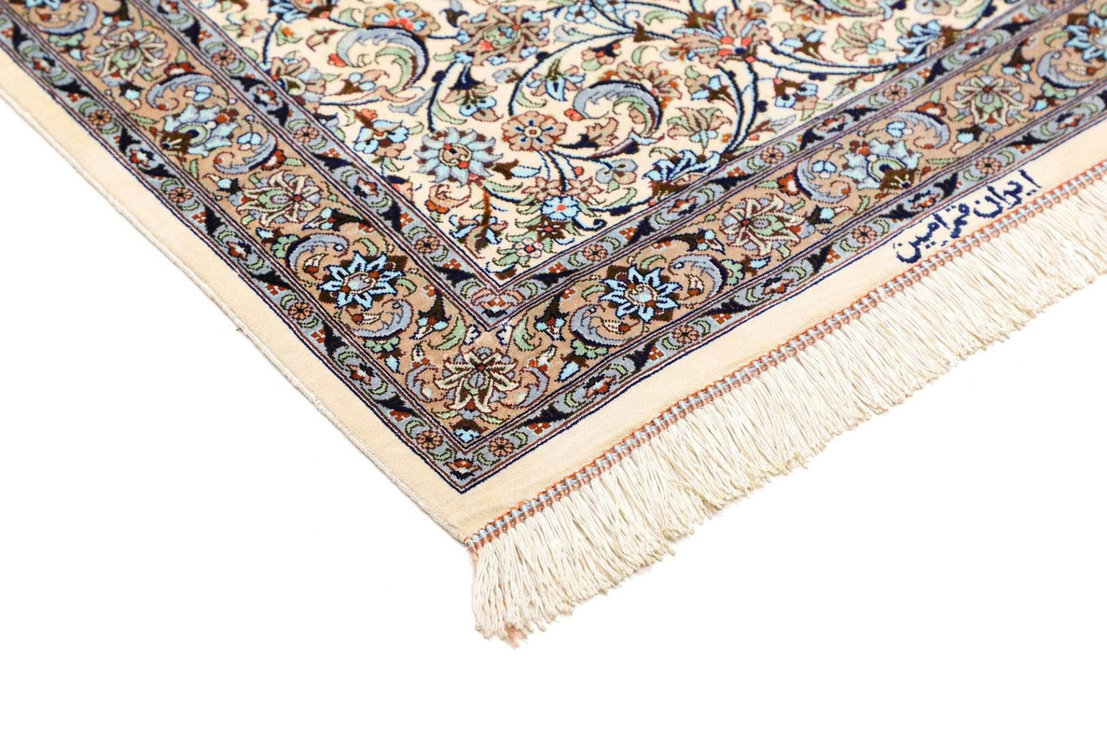 Handgeknüpfter Ghom Teppich | Knotendichte: ca. 900.000 Knoten/m² | Material: 100% Seide | Größe: 61 x 83 cm | Höhe: ca. 4 mm | Herkunft: Iran | Provenienz: Ghom | Zustand: Exklusive Qualität
