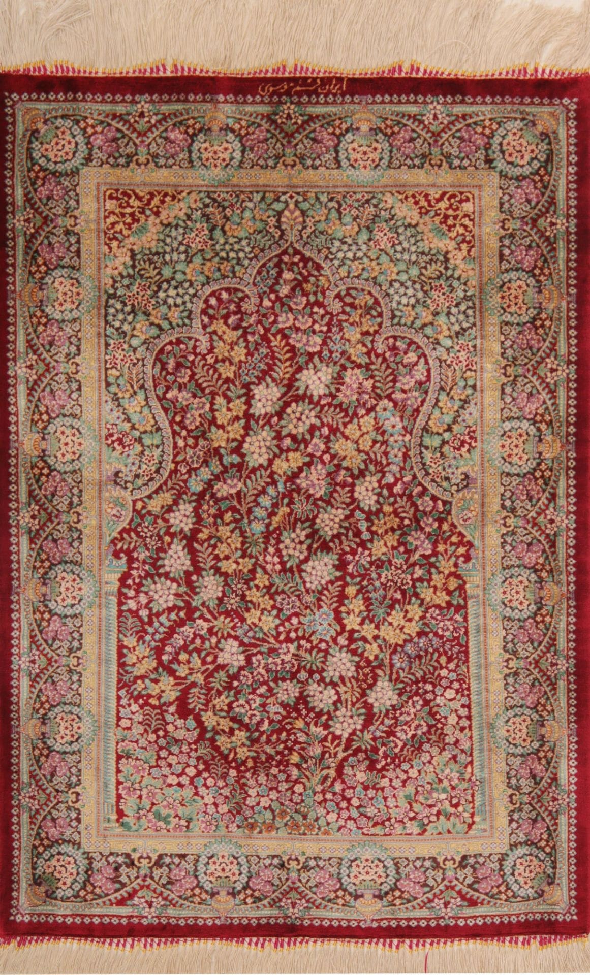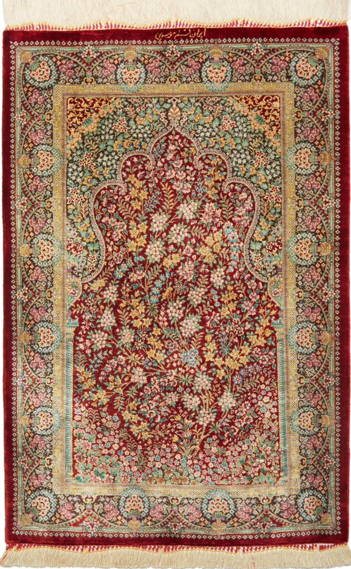 3241$Ursprünglicher Preis war: 3241$2582$Aktueller Preis ist: 2582$Ghom Teppich | Knotendichte: ca. 900.000 Knoten/m² | Material: 100% Seide (Flor und Kette) | Größe: 61 x 87 cm | Handgeknüpfte Qualität | Herkunft: Iran | In ausgezeichnetem Zustand