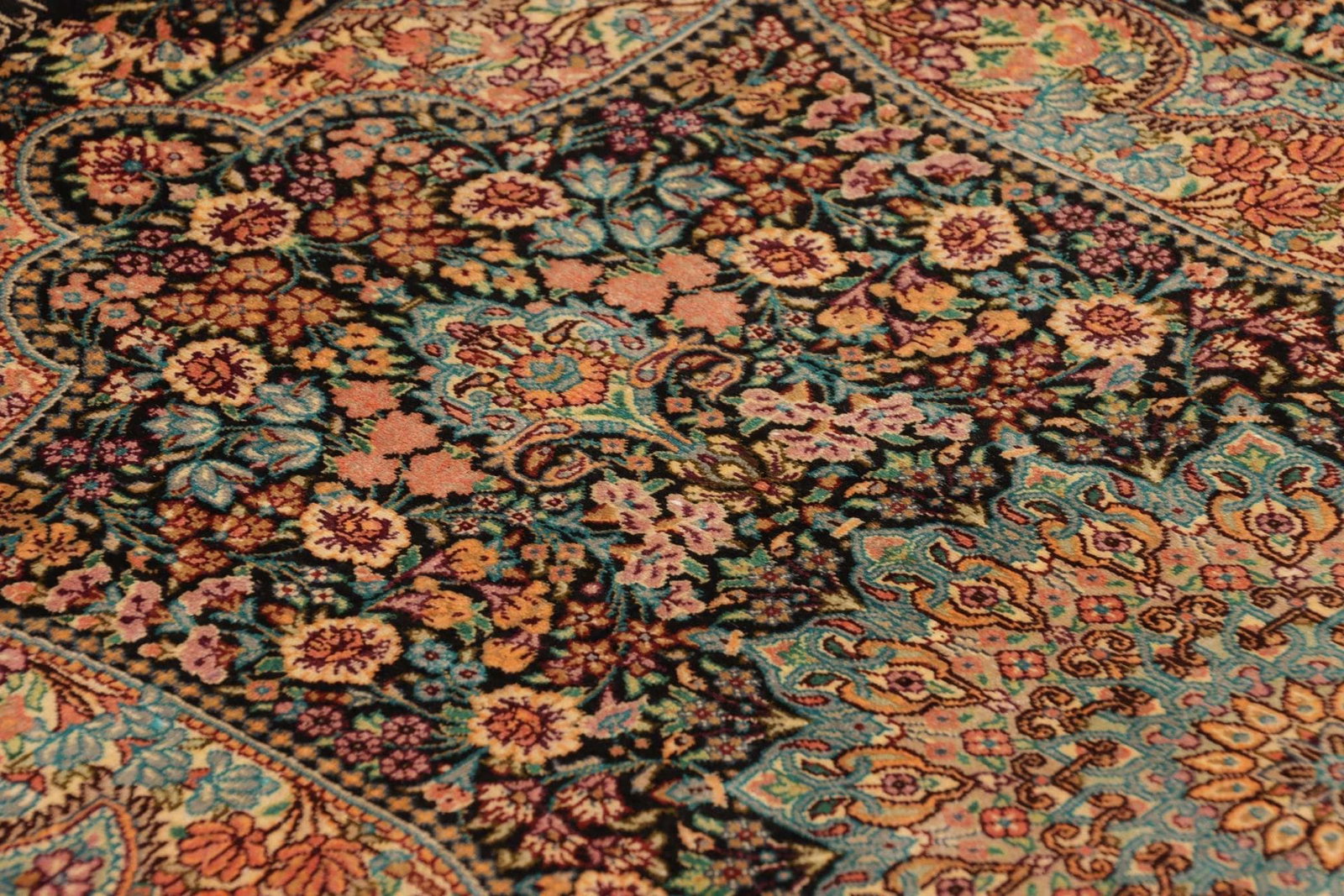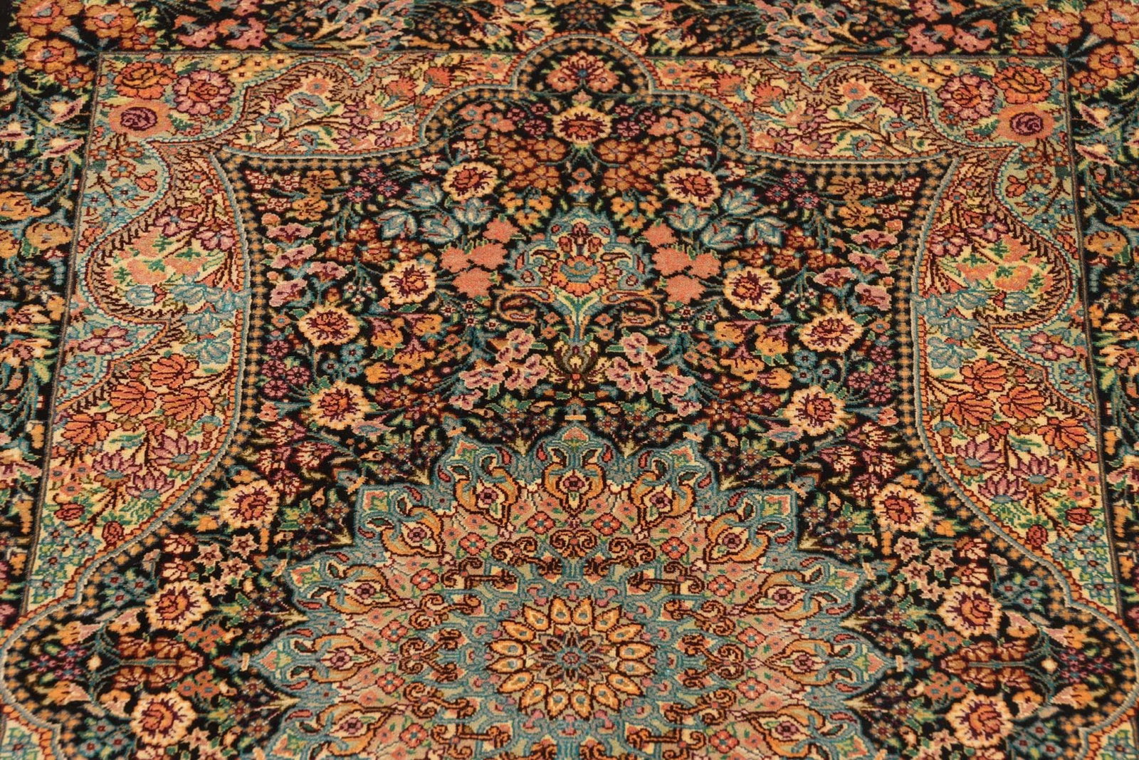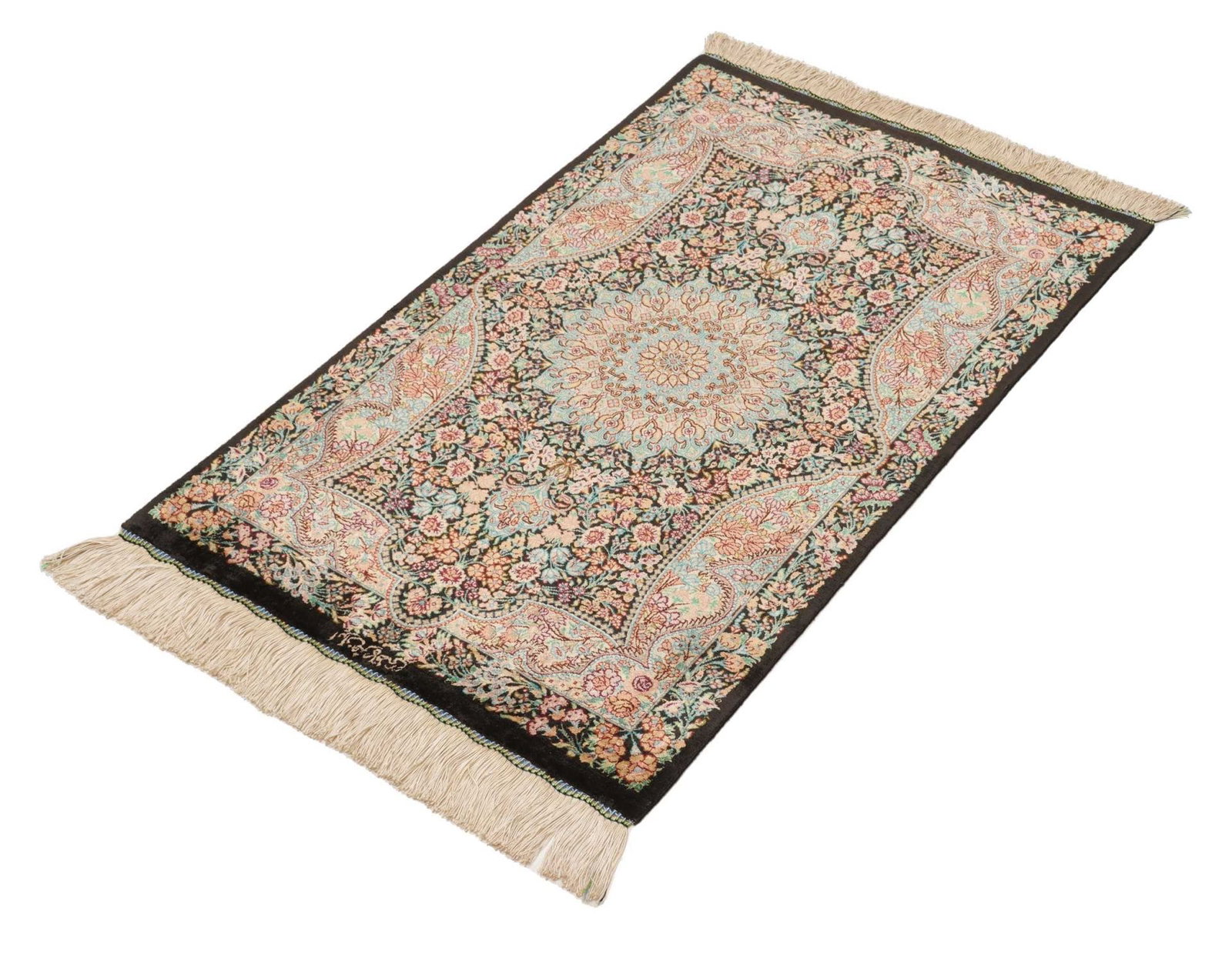 Ghom Teppich 61 x 90cm, handgeknüpft, Seide, florale Muster