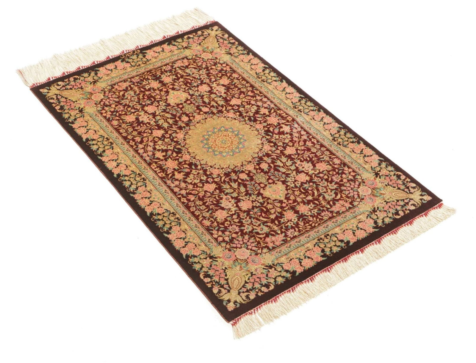 Ghom Teppich 62 x 89 cm, Seide, handgeknüpft, Perserteppich