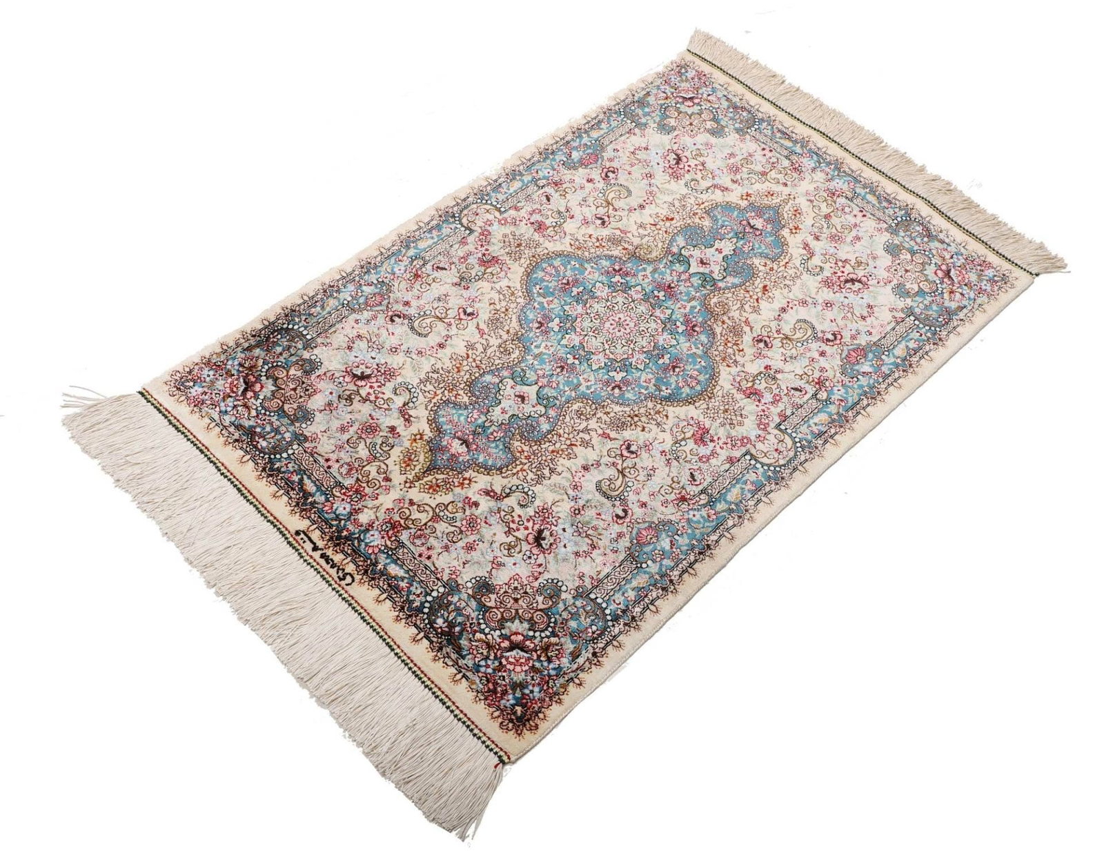 Ghom Teppich 62 x 90 cm, Seide, feine Knotenzahl, handgeknüpft