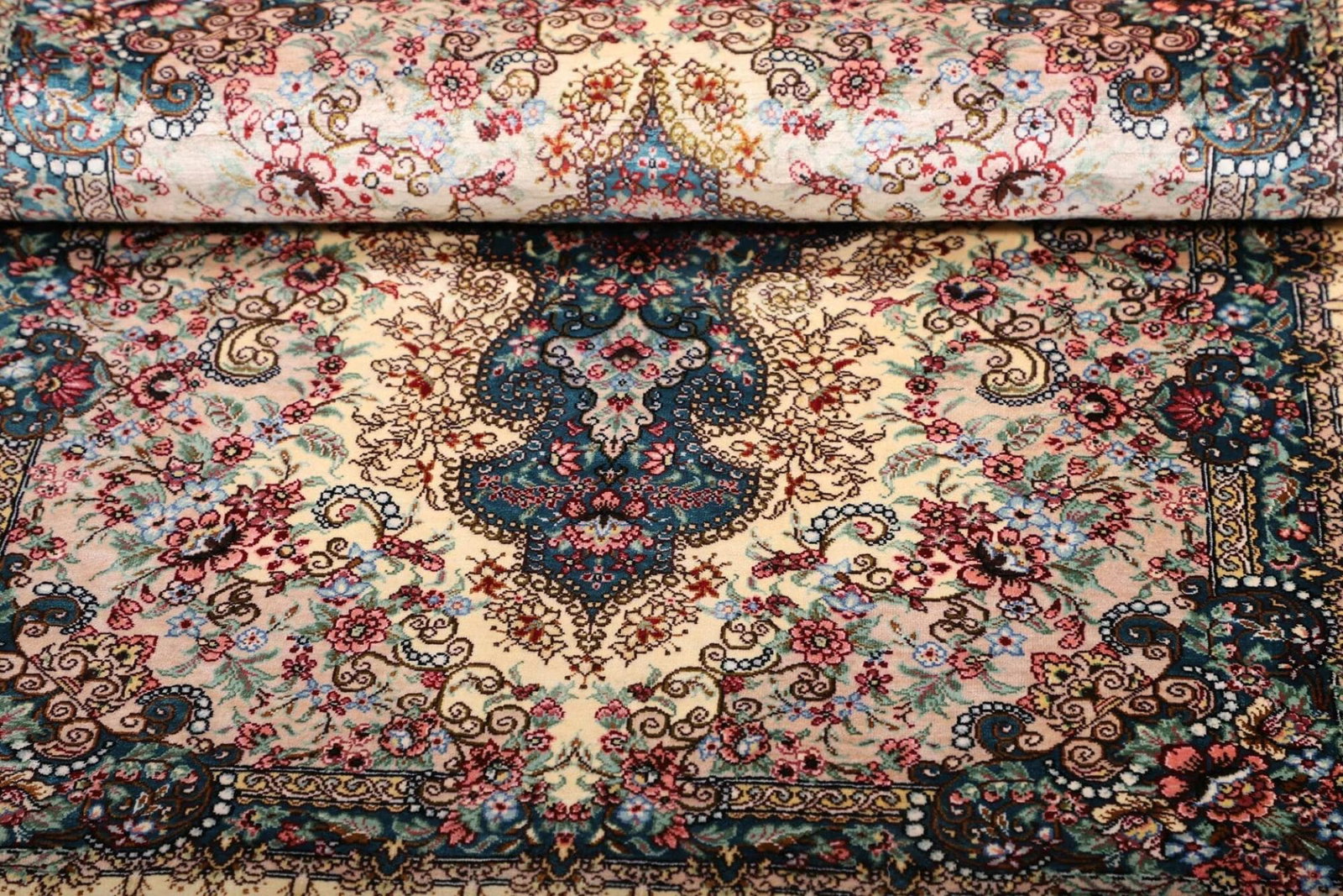 Hergestellt aus hochwertiger Seide, erstrahlt der Ghom Teppich in einem sanften Glanz und verleiht Räumen Eleganz und Stil. Seide gilt als eines der edelsten Materialien, das für seinen feinen Glanz und seine Weichheit bekannt ist. Die feine Knotenzahl ist ein Zeichen für die hohe Handwerkskunst der Teppichknüpfer, die in stundenlanger Arbeit über 1.000.000 Knoten pro Quadratmeter erreichen können. Diese Detailgenauigkeit sorgt nicht nur für eine atemberaubende Optik, sondern auch für eine lange Lebensdauer des Teppichs, der über Generationen hinweg geschätzt werden kann.