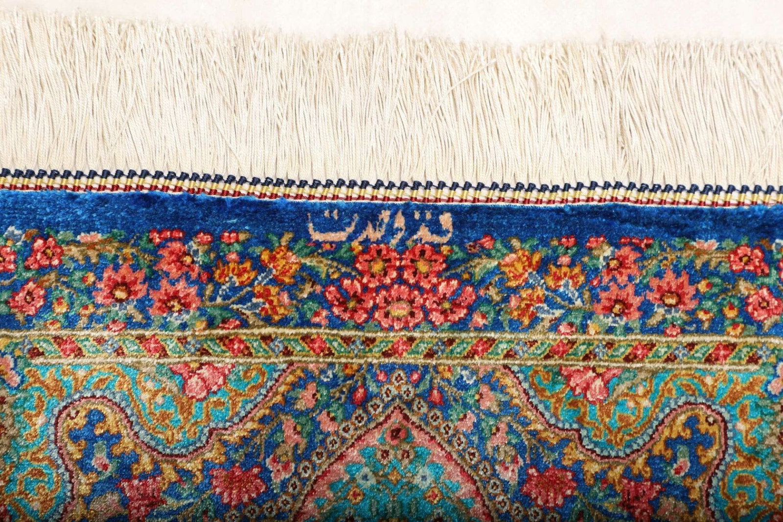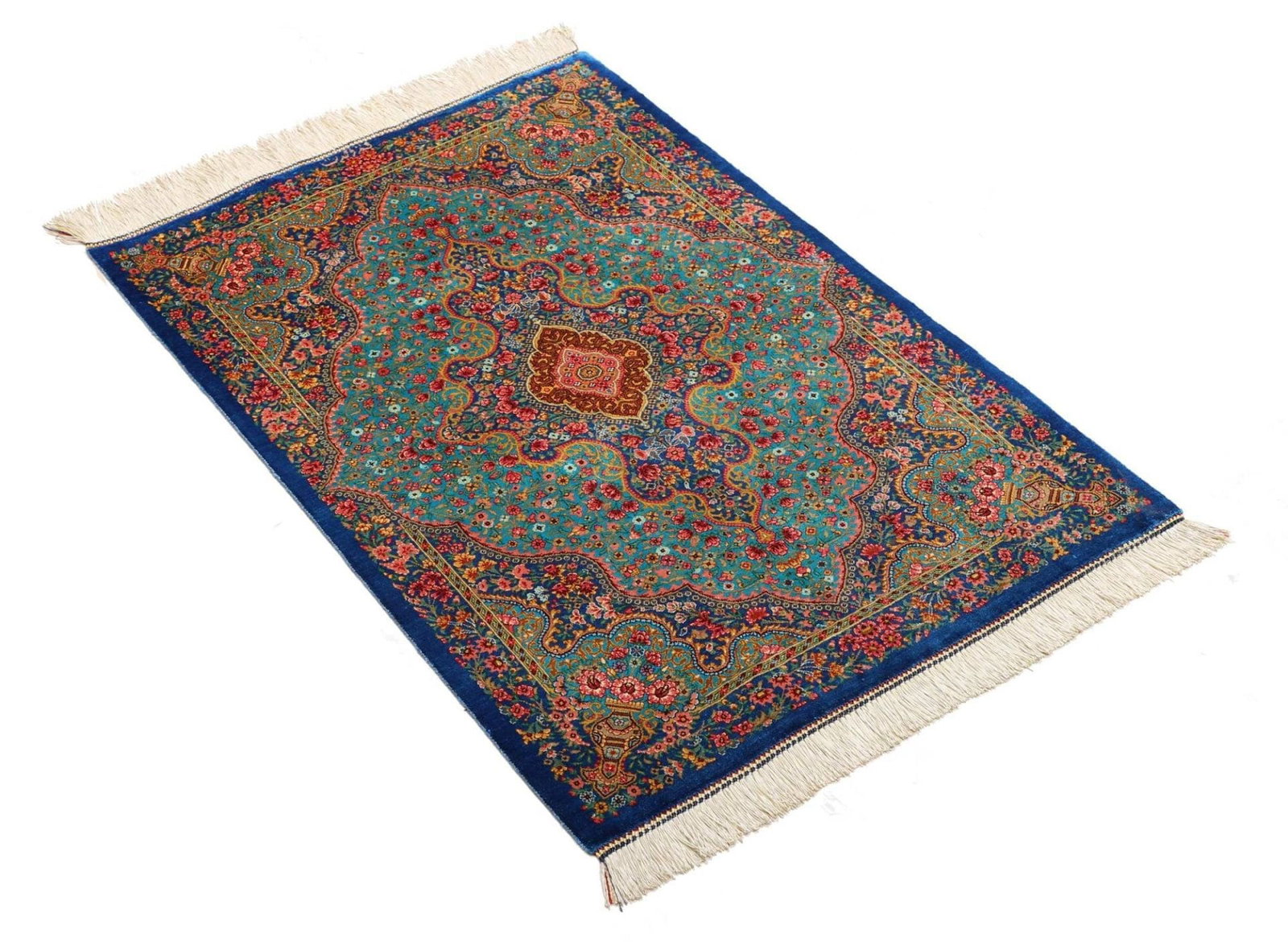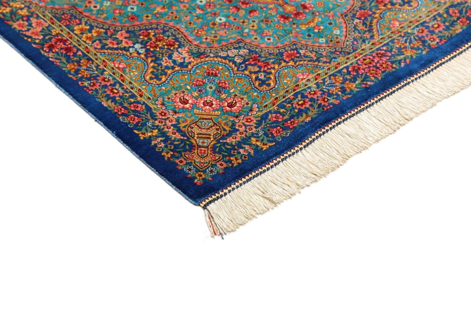 Handgeknüpfter Ghom Teppich | Knotendichte: ca. 900.000 Knoten/m² | Flor: 100% Seide | Kette: 100% Seide | Größe: 63×92 cm | Herkunft: Iran | In hervorragendem Zustand