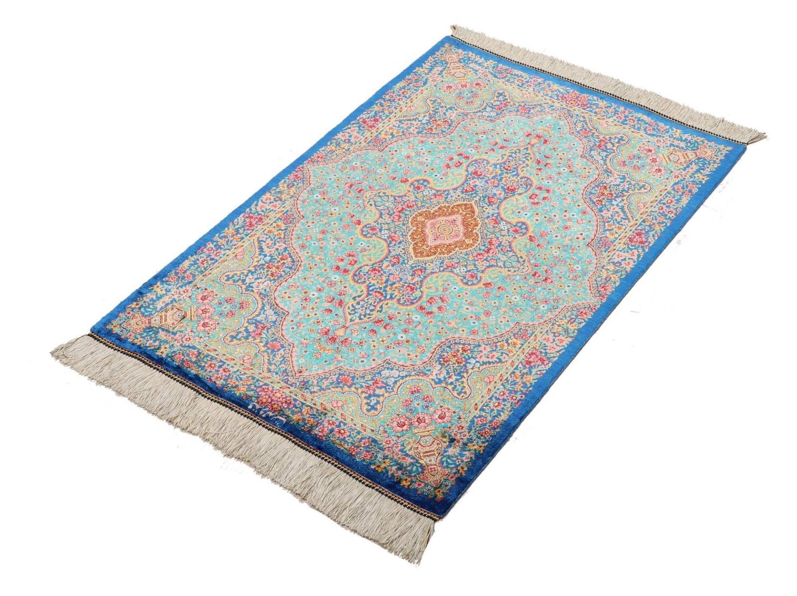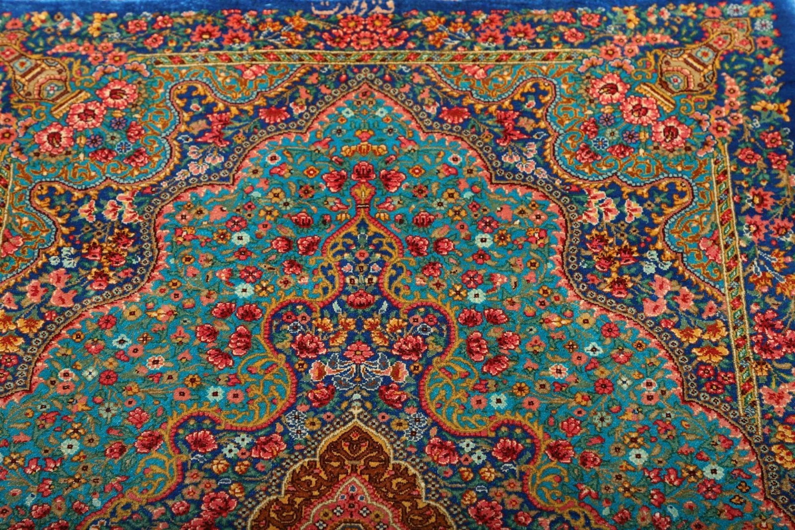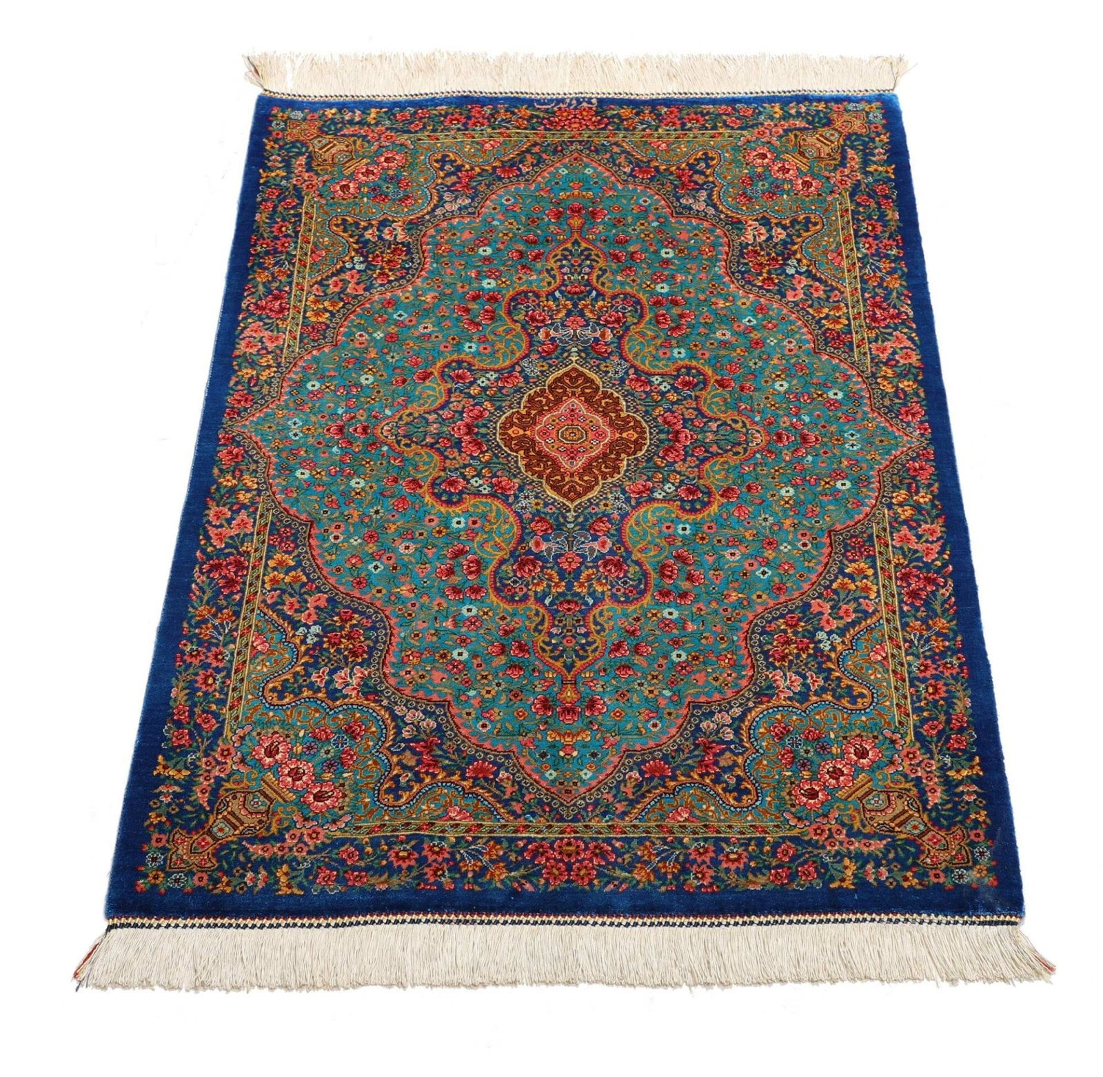 Handgeknüpfter Ghom Teppich | Knotendichte: ca. 900.000 Knoten/m² | Flor: 100% Seide | Kette: 100% Seide | Größe: 63×92 cm | Herkunft: Iran | In hervorragendem Zustand