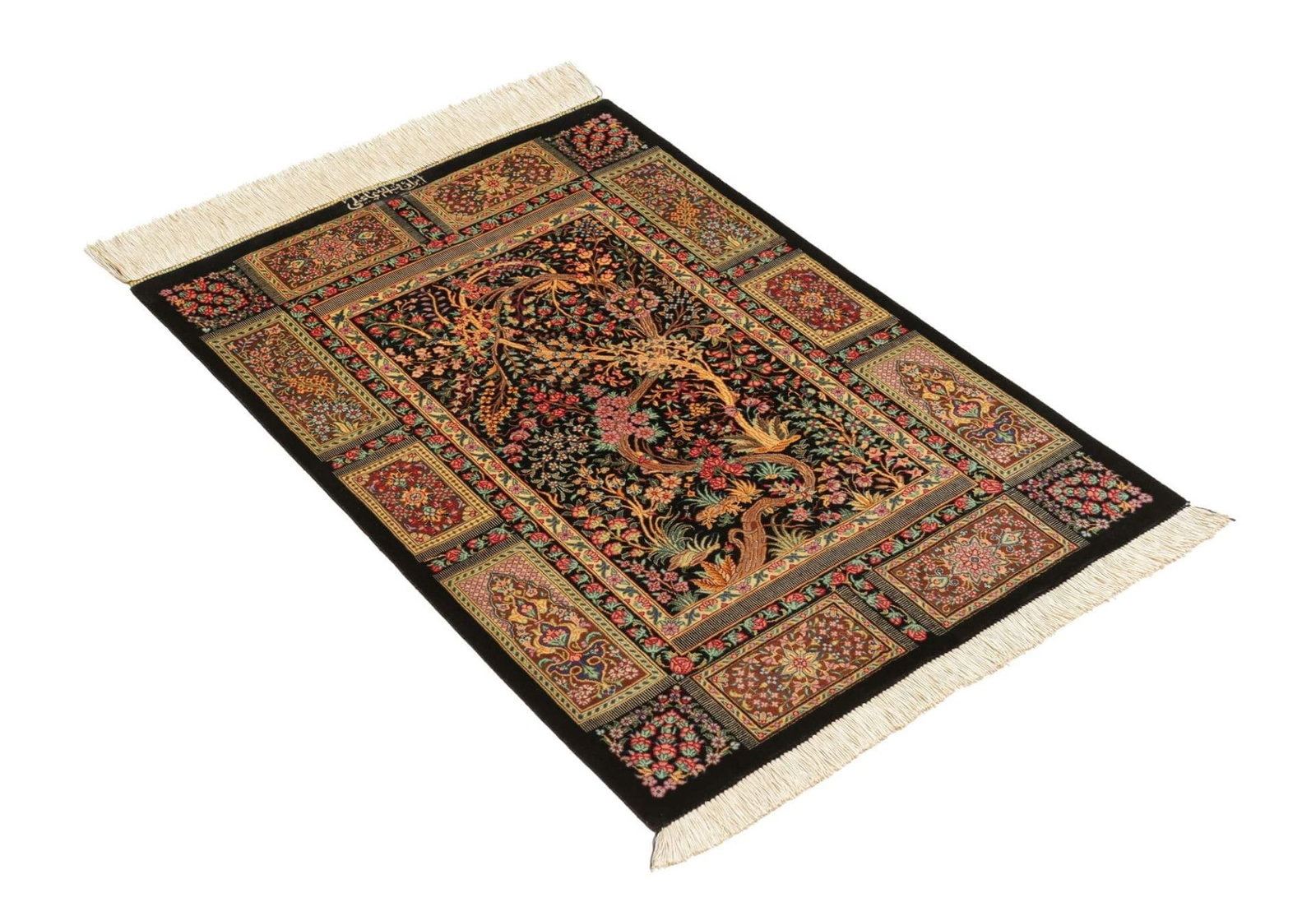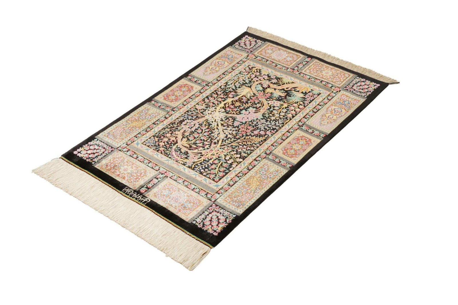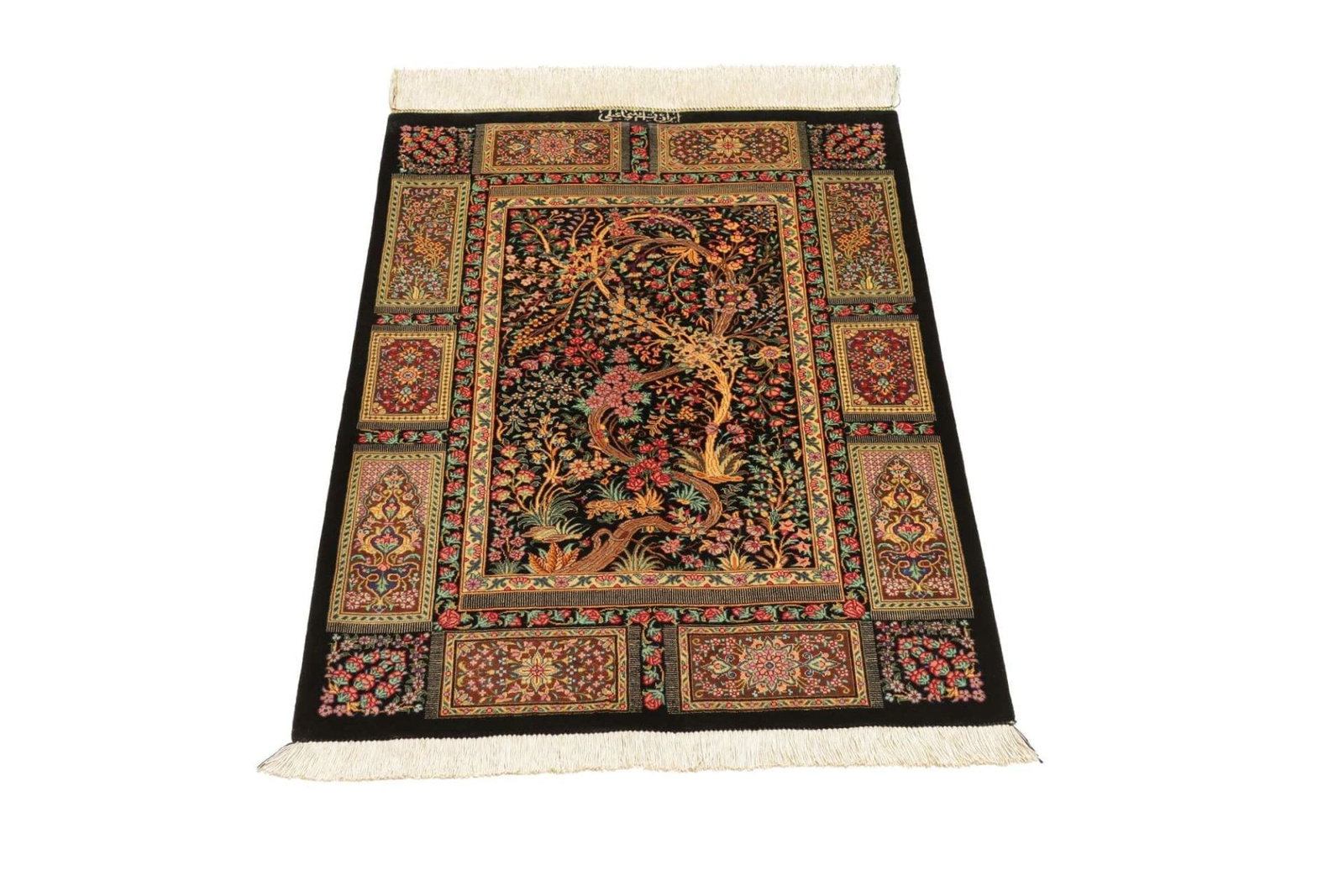 3434$Ursprünglicher Preis war: 3434$2878$Aktueller Preis ist: 2878$| Ghom Teppich | Knotendichte: ca. 900.000 Knoten/m² | Material: 100% Seide (Flor und Kette) | Größe: 63 x 92 cm | Handgeknüpft | Herkunft: Iran | Höhe: ca. 4 mm | Exklusive, feine Verarbeitung |