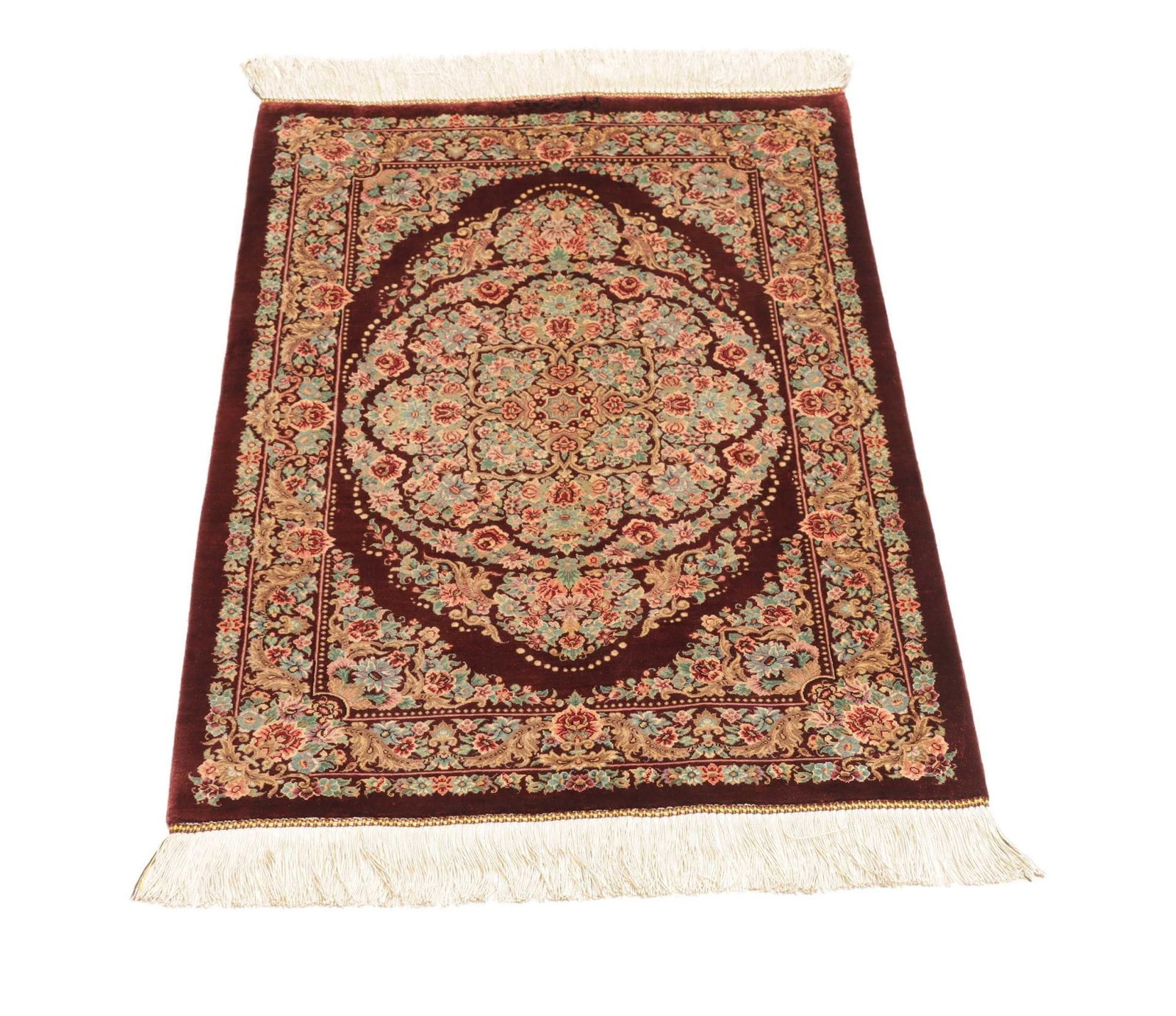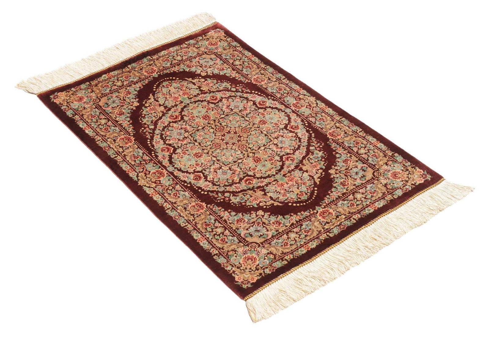 Ghom Teppich 64 x 91 cm, Seide, handgeknüpft, Perserteppich