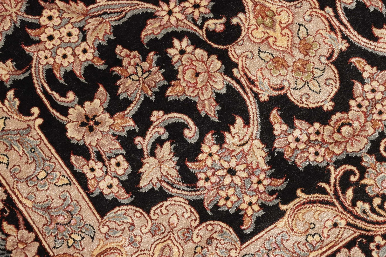 Ghom Teppich 65 x 90cm, Seide, florale Muster, handgeknüpft