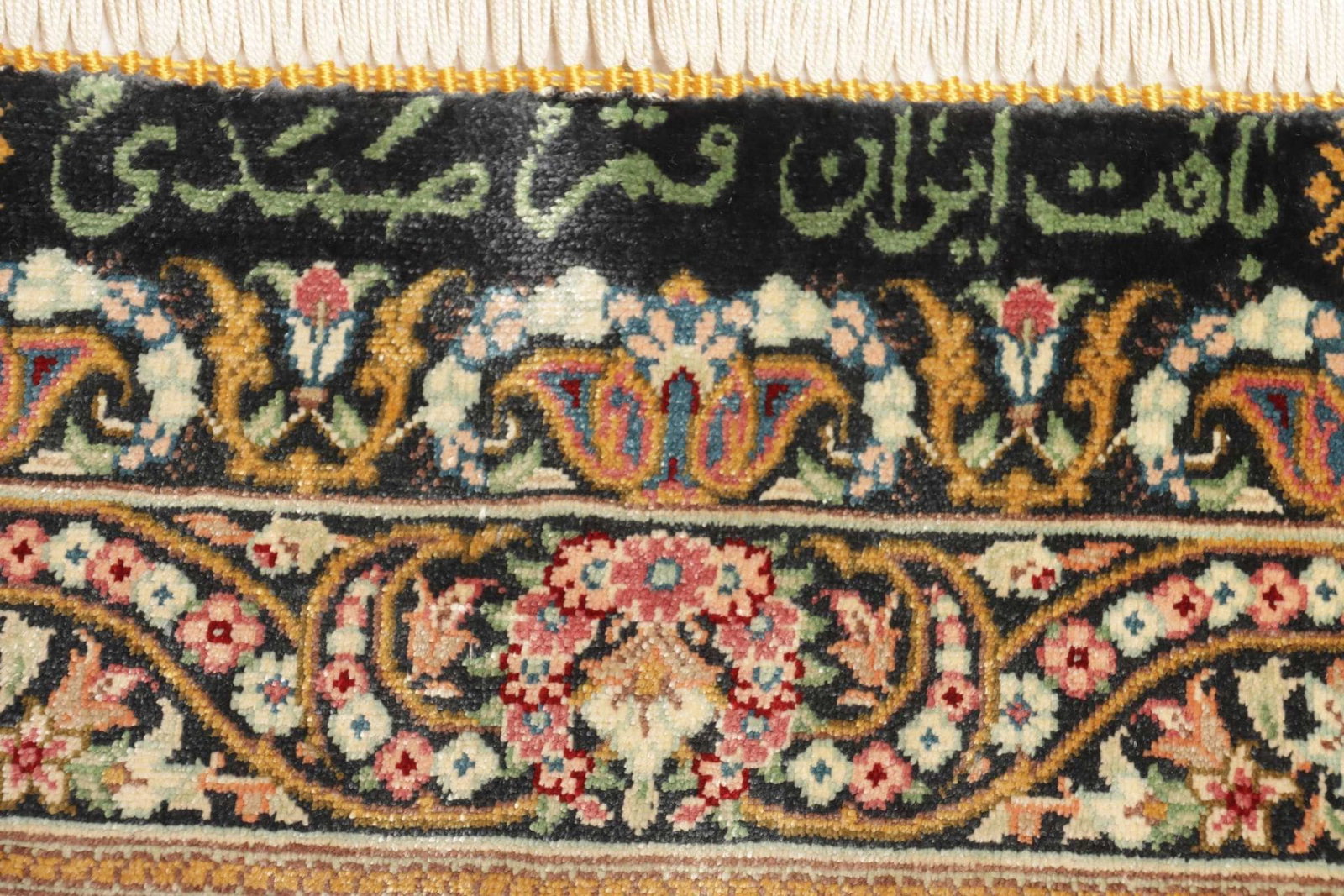 3313$Ursprünglicher Preis war: 3313$2789$Aktueller Preis ist: 2789$| Ghom Teppich | Knotendichte: ca. 900.000 Knoten/m² | Flor: 100% Seide | Kette: 100% Seide | Größe: 65 x 90 cm | Handgeknüpft | Herkunft: Iran | In hervorragendem Zustand