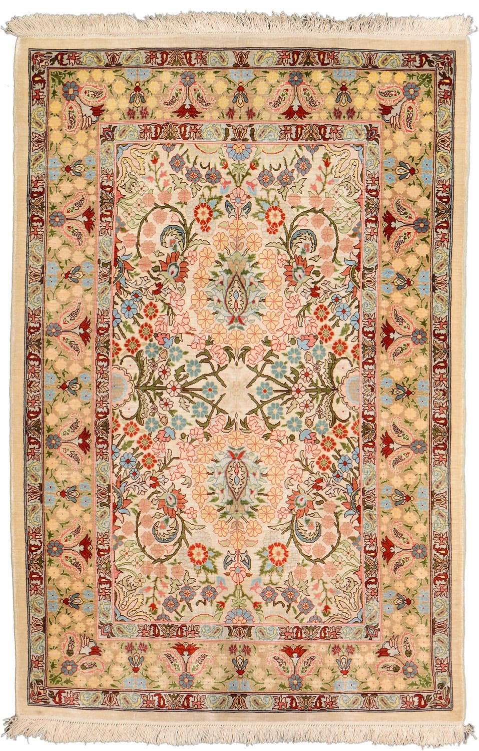Ghom Teppich | Knotendichte: ca. 800.000 Knoten/m² | Material: 100% Seide | Größe: 73 x 108 cm | In hervorragendem Zustand | Ursprung: Iran | Verarbeitung: Handgeknüpft | Exklusive, feine Haptik