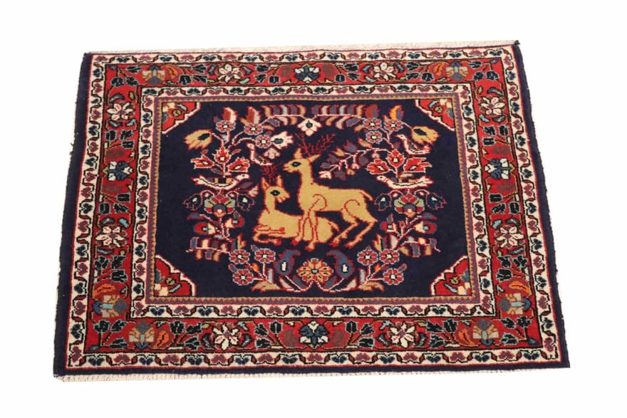 Ghom Teppich 79×63 cm, handgeknüpft, aus edler Seide