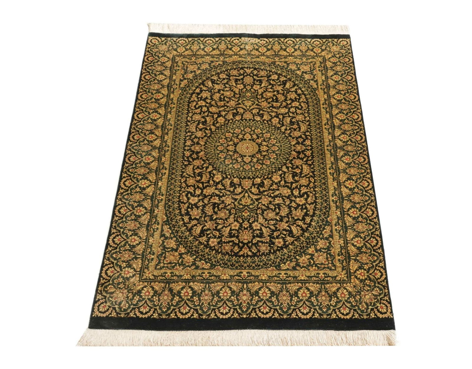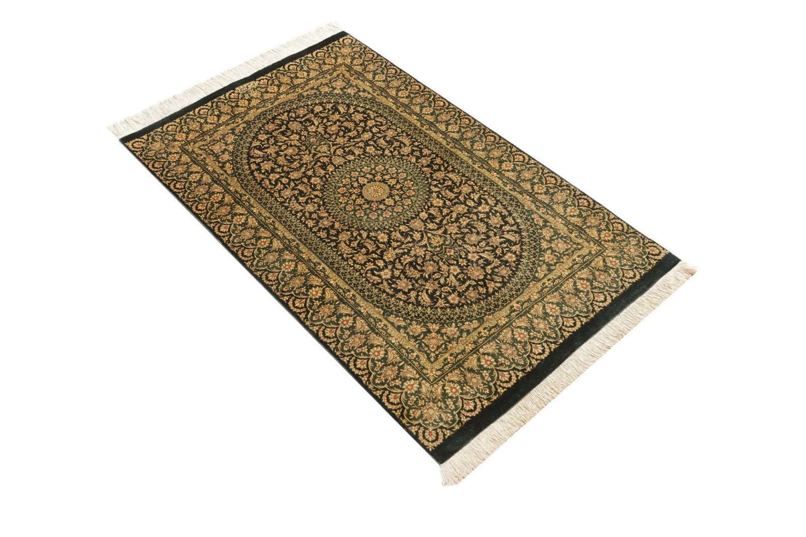 Ghom Teppich 80 x 120cm, florale Seidenmuster, handgeknüpft