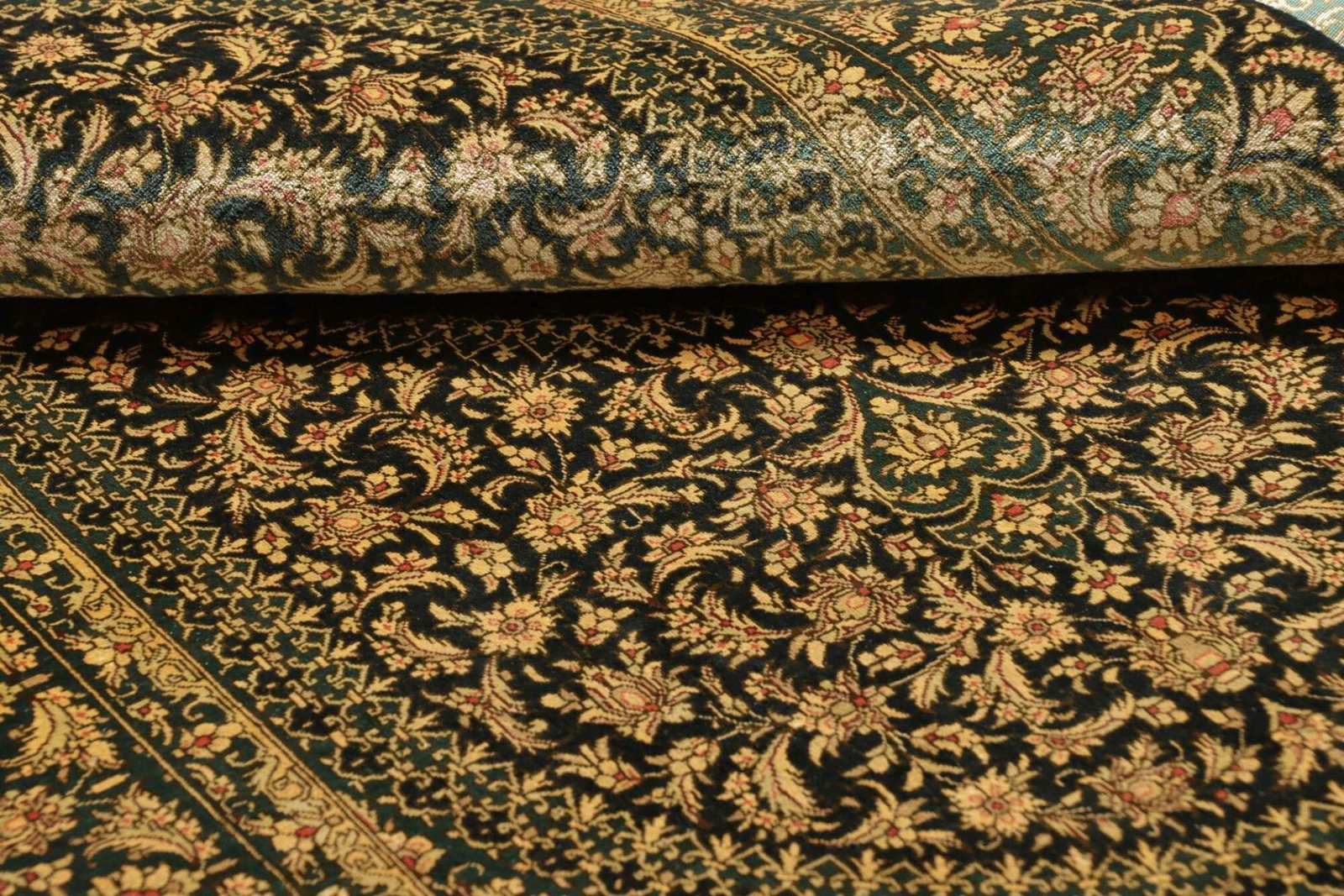 Das florale Seidenmuster dieses Ghom Teppichs ist eine Hommage an die Schönheit der Natur. Es zeigt kunstvoll gestaltete Blumen und Pflanzen, die harmonisch zusammengefügt sind und ein Bild idylischer Gärten erzeugen. Diese Designs sind nicht nur dekorativ, sondern tragen auch symbolische Bedeutungen, oft inspiriert von der persischen Poesie und Literatur. Jedes Motiv erzählt eine Geschichte und ist sorgfältig durchdacht.