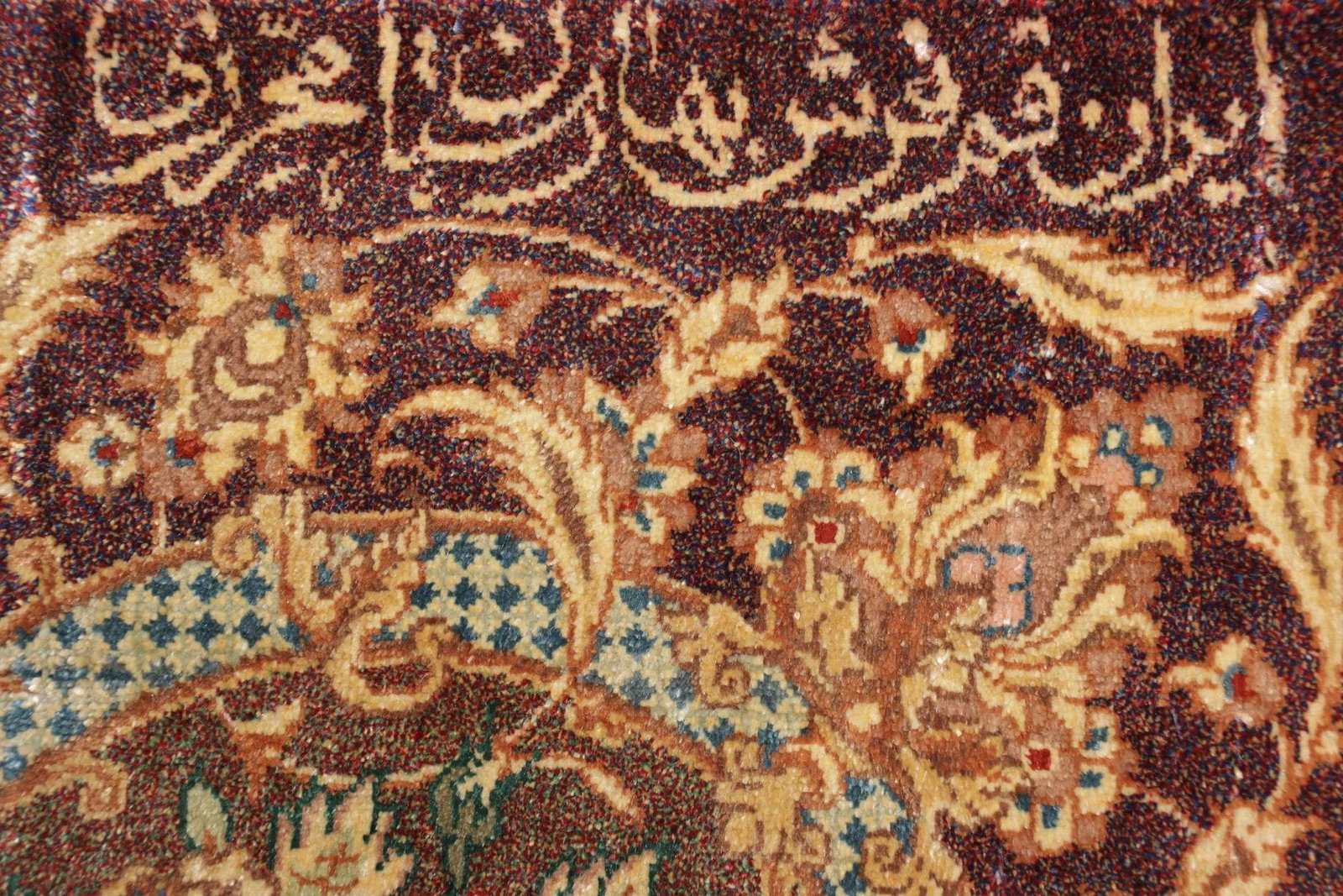 Gefertigt aus reiner Seide, bietet der Ghom Teppich eine Weichheit und Eleganz, die in der Welt der Teppiche ihresgleichen sucht. Seide ist bekannt für ihre natürliche Stärke und Langlebigkeit, was bedeutet, dass der Teppich auch bei täglicher Nutzung seine Schönheit bewahrt. Die 900.000 Knoten pro Quadratmeter zeugen von der hohen Handwerkskunst, die in die Herstellung dieses Teppichs eingeflossen ist. Jede Knotenreihe wurde mit Sorgfalt und Geschicklichkeit platziert, um komplexe Muster und lebendige Farben zu erzeugen, die das Gesamtbild dieses Teppichs harmonisch abrunden.
