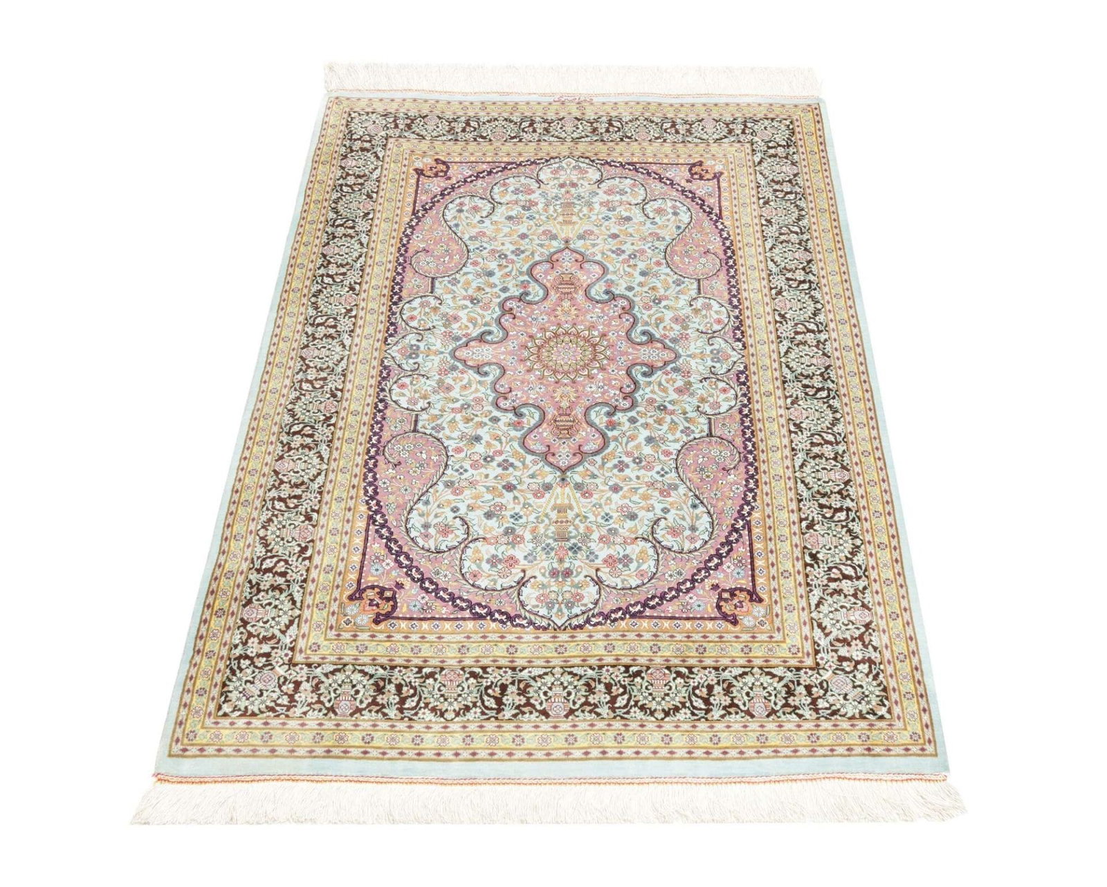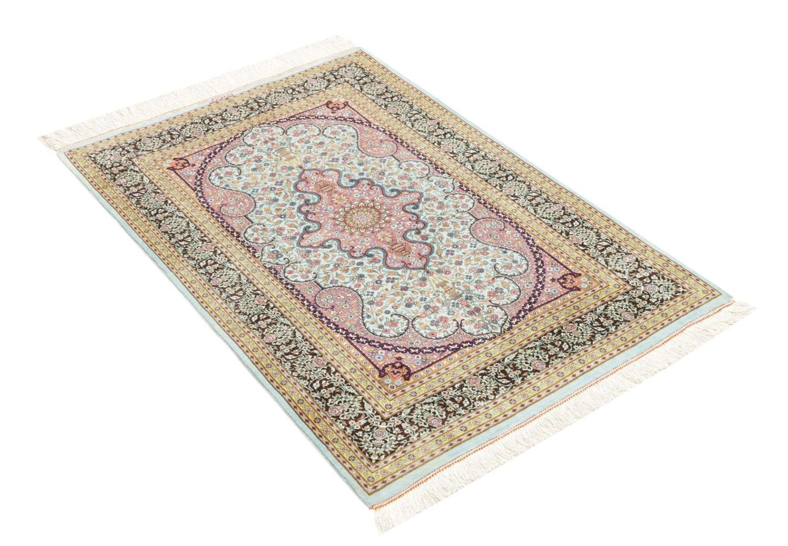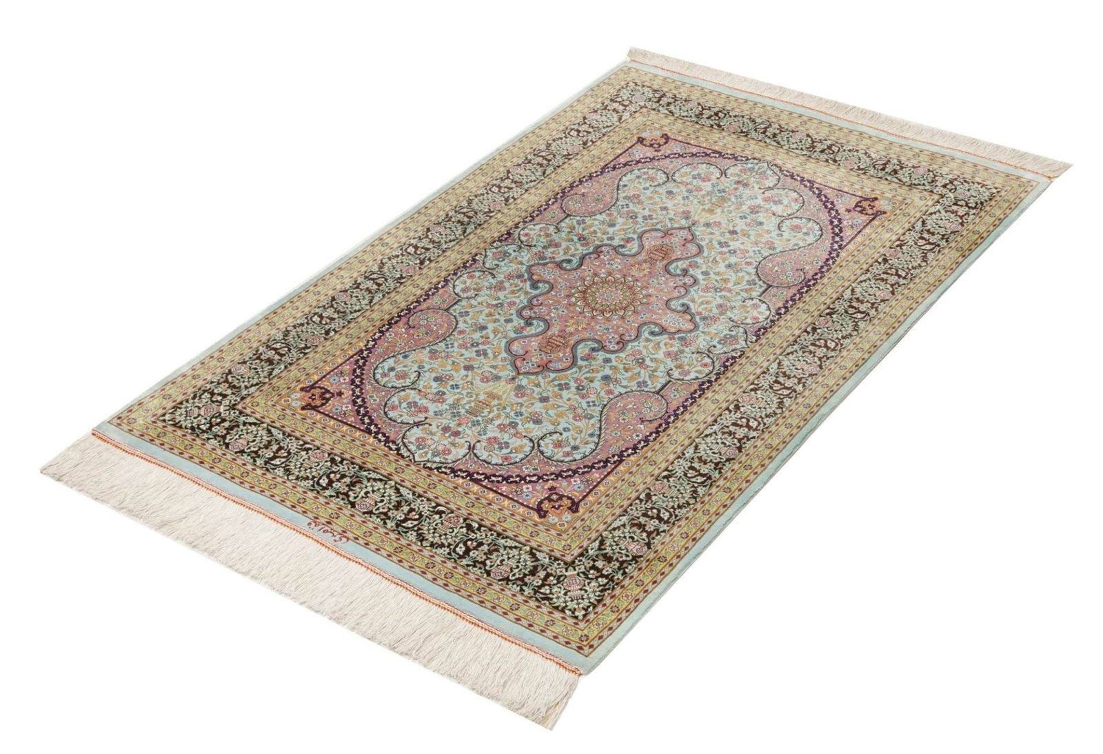 Ghom Teppich 82 x 121cm, Seide, florales Muster, handgeknüpft