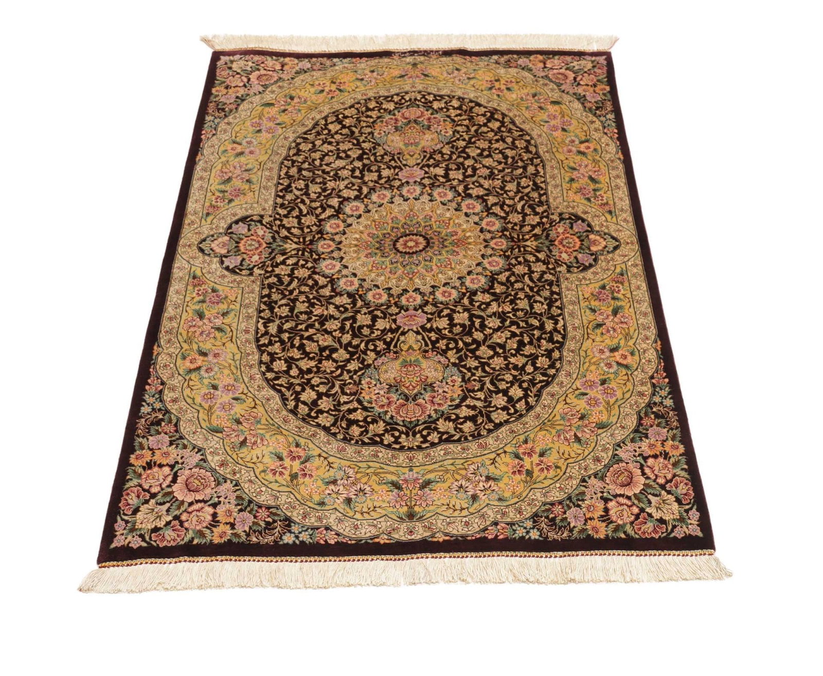 Ghom Teppich 82 x 124 cm, Seide, handgeknüpft, Perserteppich