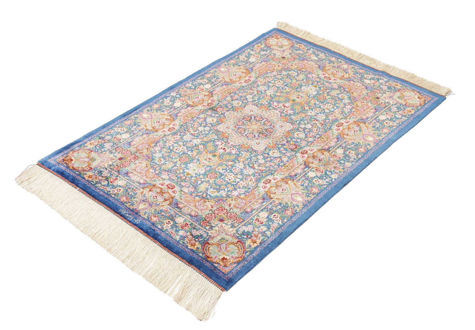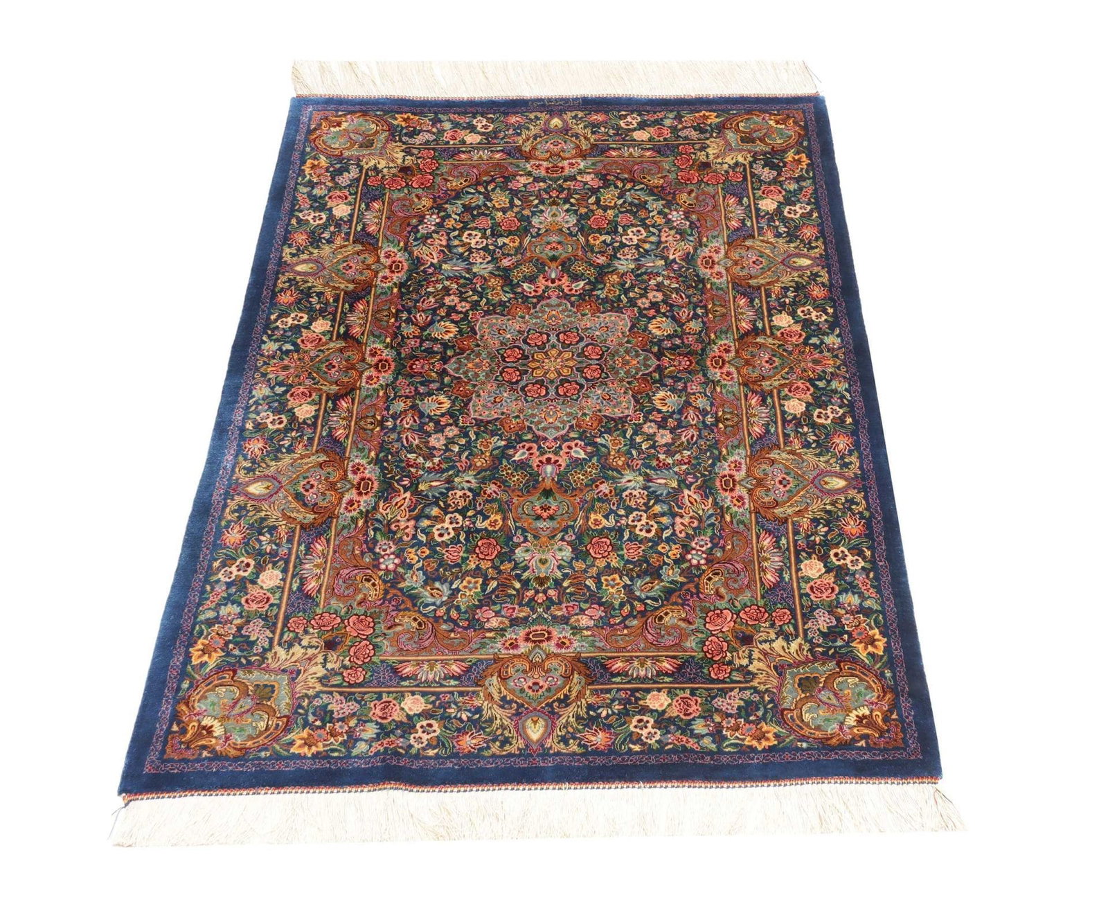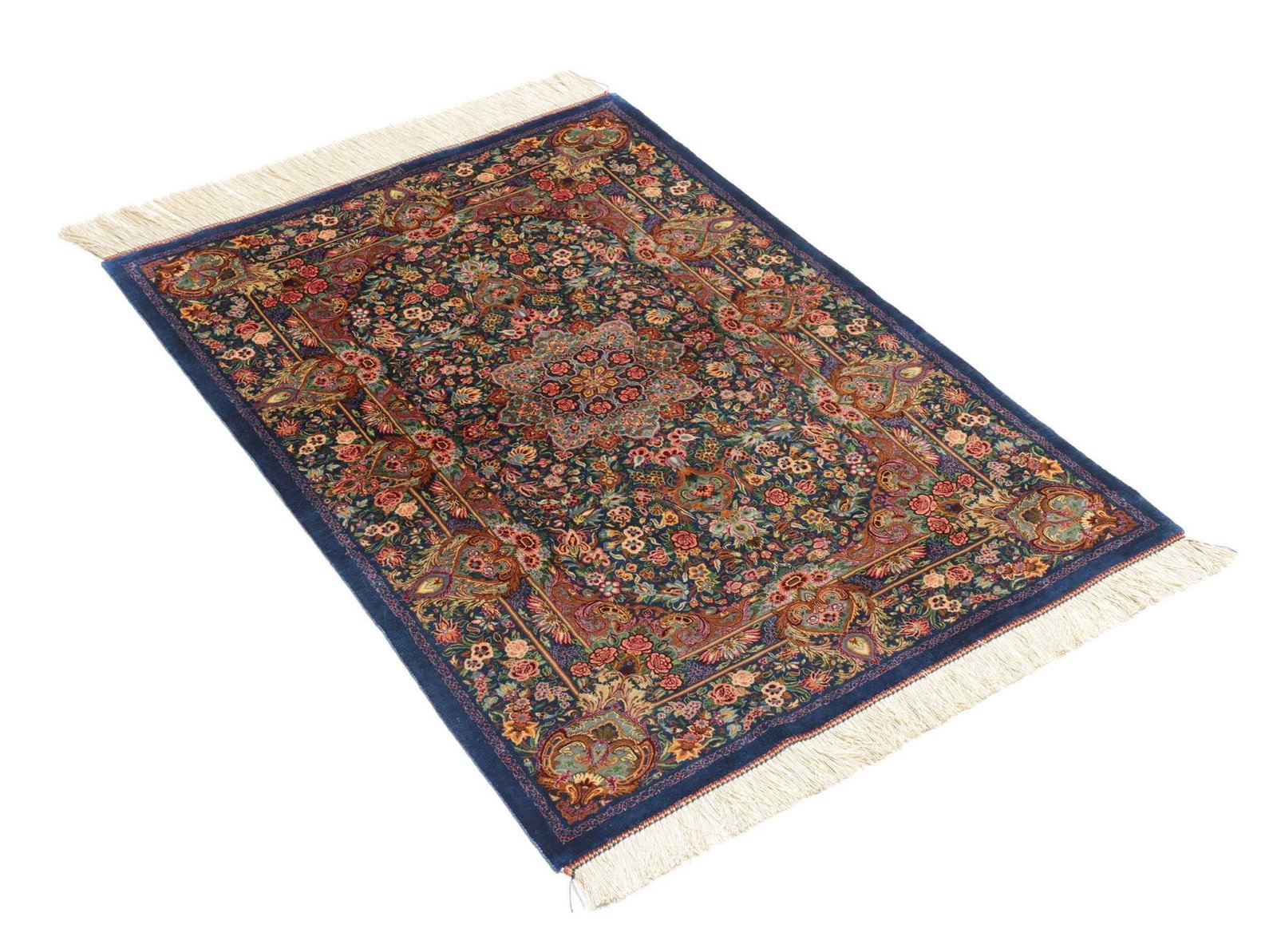 Ghom Teppich 83 x 117cm, Seide, handgeknüpft, Perserteppich