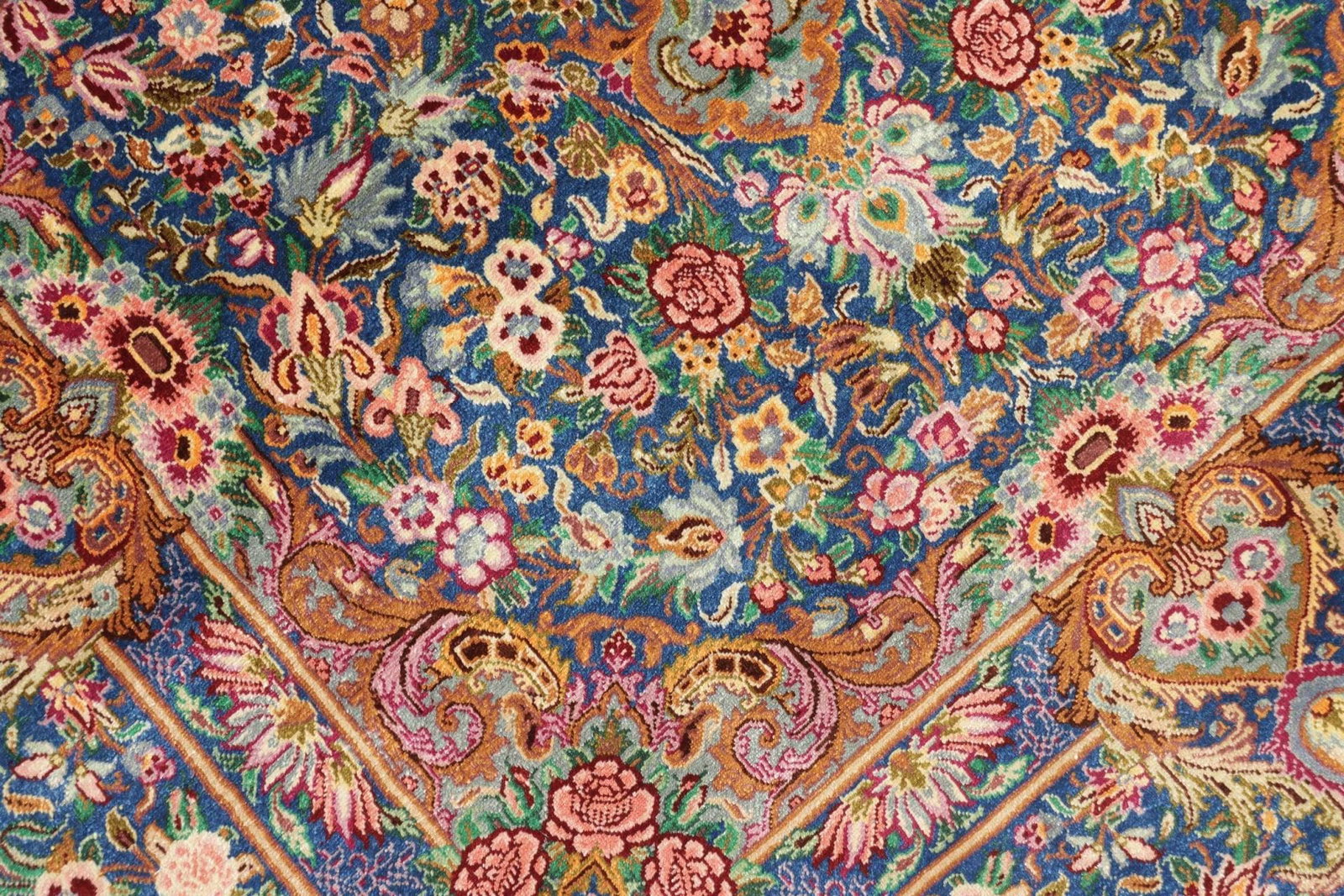 Der Einsatz von hochwertiger Seide verschafft diesem Teppich eine edle Ausstrahlung, die in jedem Raum für Eleganz sorgt. Seide ist bekannt für ihren seidigen Glanz und ihre Farbbrillanz, wodurch die Farben lebendig und einladend wirken. Die kunstvolle Handknüpfung sorgt dafür, dass jedes Stück ein Unikat ist, das mit viel Hingabe und Sorgfalt erstellt wurde. Die Kombination aus edlem Material und meisterhaftem Handwerk positioniert diesen Teppich in der oberen Qualitätsklasse und hebt ihn von anderen Teppichen ab.